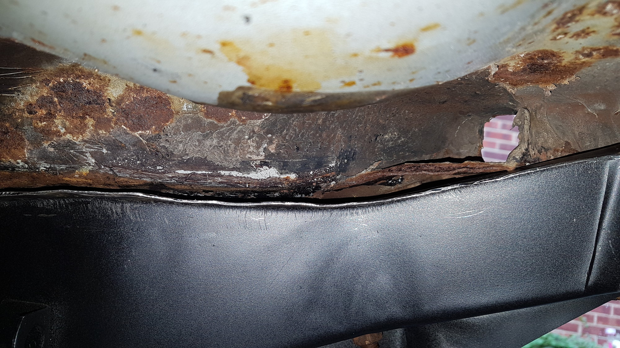 It doesn't look a mile away and I would think a bit of fettling would get it. I've never heated a pressed part so not 100% sure if heating will help. How about a jack and a block of wood to get it up at the low end? Another option would be to cut the flange off the new part and weld it directly onto the car.