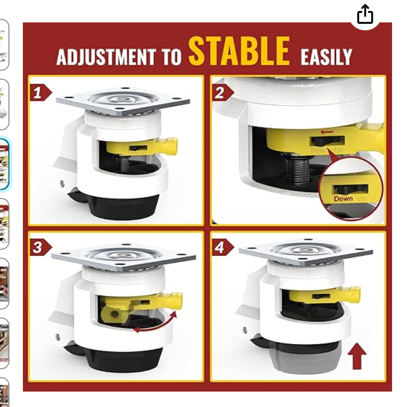 Plan B is to pack the bottom of each leg with shims. It'll work fine but I'd rather find the adjustables.
