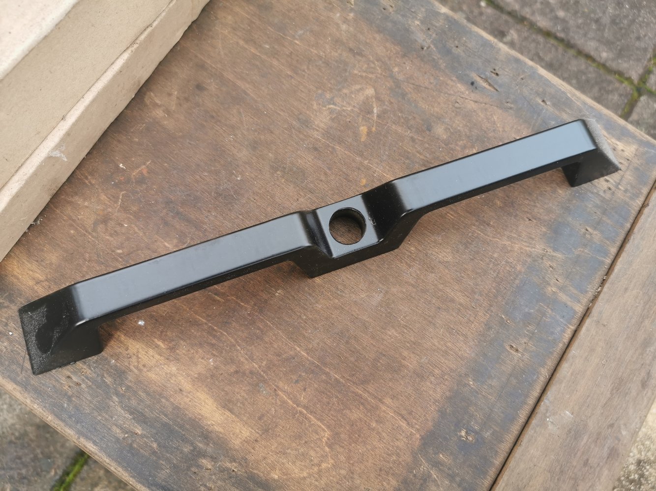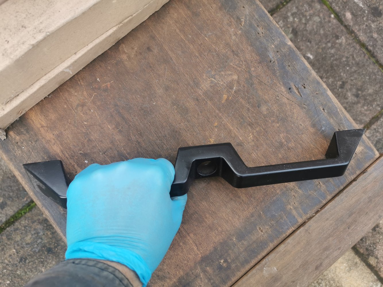 Mine (1989) had the two handle grips but the lock was flush with the outside, not stepped back. Don't know if they were all like that?Range Rover classic upper tailgate handle.