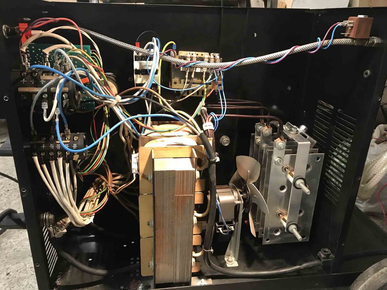 Your open-circuit voltages are very high - about twice what I would expect, and the drop when actually welding is also large ( especially for a 3-phase machine where three secondary windings are sharing the current load ).