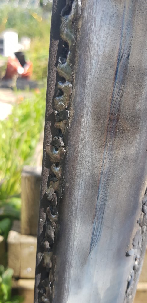 this is art.I'll post the worse welds I bet you've even seen. I'm gradually getting the hang of MIG but I was attempting to weld up a fence using Stick and I'm really struggling. I'd had a play about on bits of scrap and seemed to be able to get the hand of it. Albeit, indoors, on a table with thinner metal. I've been mucking about with different settings but cant seem to get the hang of it at all. I do have trouble seeing what I'm doing and keeping a steady hand and it's a bit tight to get into some areas but nevertheless I feel that I'm getting worse, not better. Don't laugh as you'll put me off forever