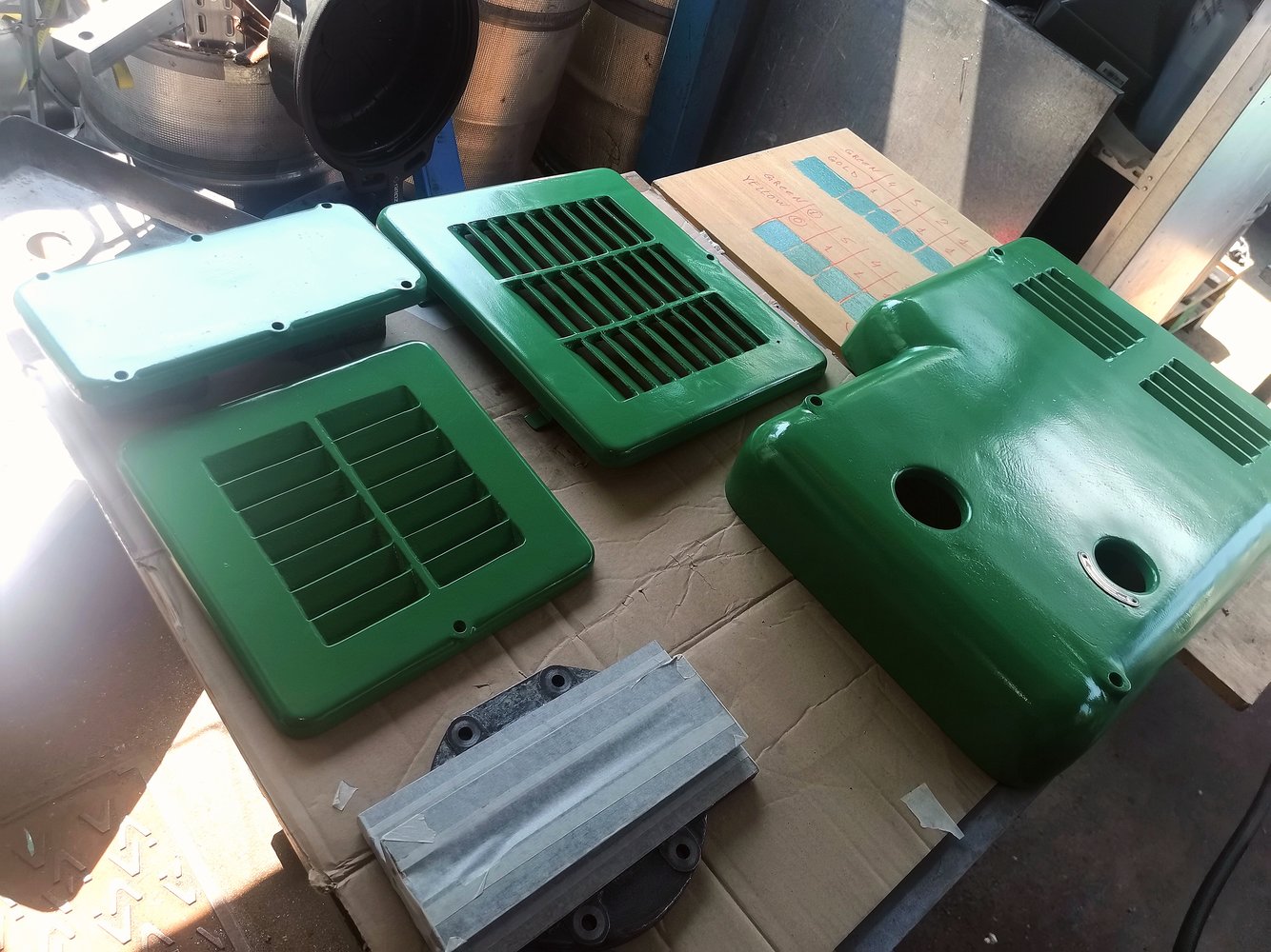 Painting small parts, I hope to end soon. I fiddled around with color selection for a long time. There will be a simple green hammerite, but this shade is not sold in the store. Mixed paints.