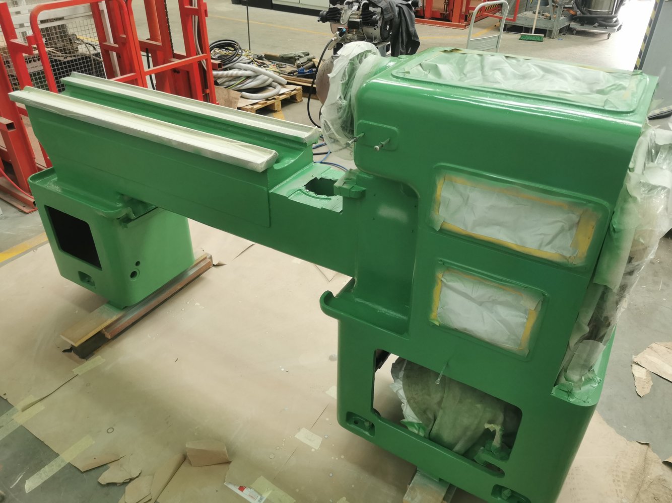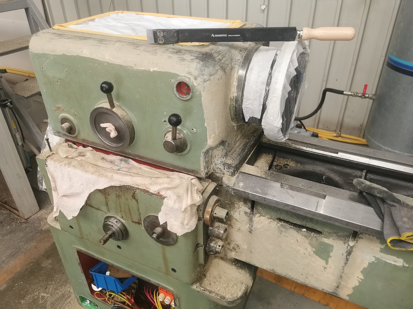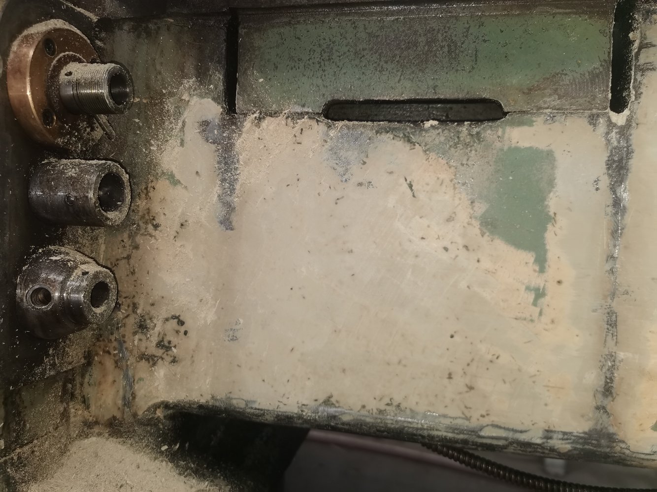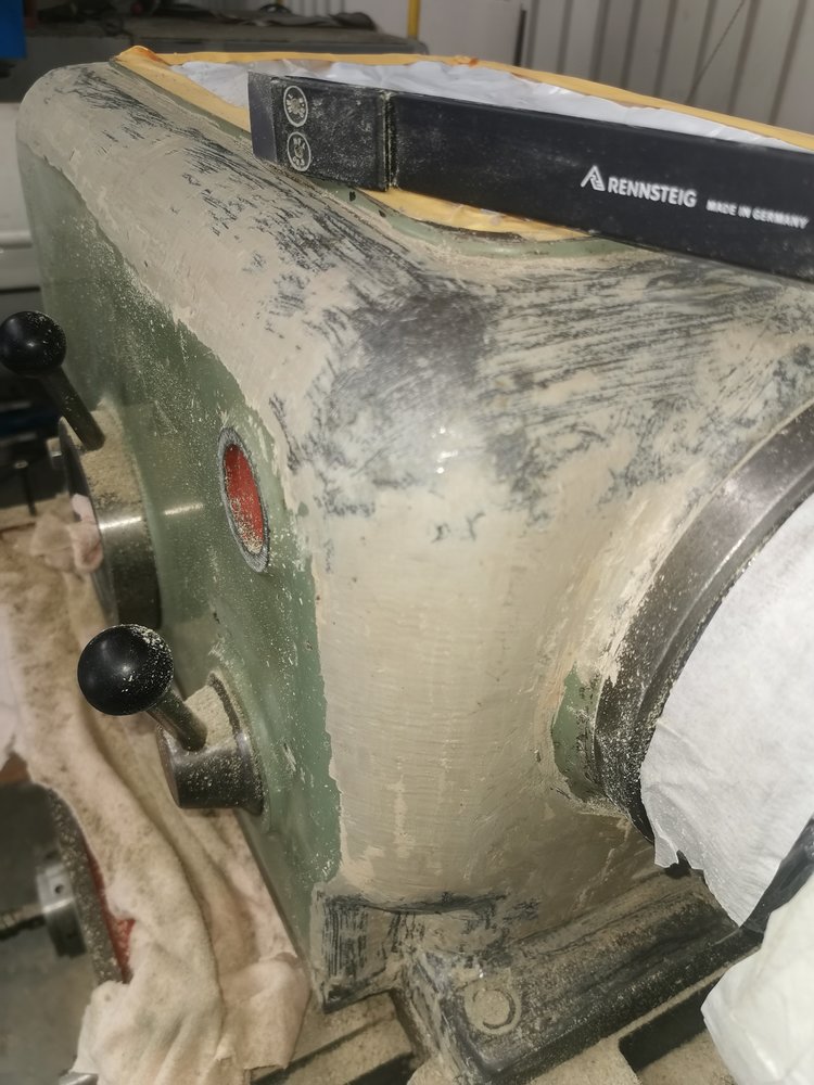 I even have a needle impact pneumatic hammer for such purposes ... It was successfully tested earlier on fillers 8 mm thick in places. But not at this time. I will only scrape off the putty in the most greasy places, and where it is broken, down to bare metal and a little leveling sanding with sandpaper. Possibly thick sprayable epoxy or polyester primer. There is a place to spend working hours on more useful things, with a direct return. But to use a spitting, oiled machine "as is" is beyond my powers. The inner perfectionist rebels. I'm going to compromise. I wouldn't want to go back to repainting a lathe after a few years. The entire caliper group must be scraped. But first, assemble the lathe after cleaning and put it into operation. Take measurements, sketch a plan. Buy or make high-precision rulers. Some tools have already been purchased.I was very surprised after doing a few machines myself is how much filler is used to achieve a flat surface on the castings...its this that is the hard part to remove and i found using a wire cup wheel in a grinder was better at doing it than a scraper.