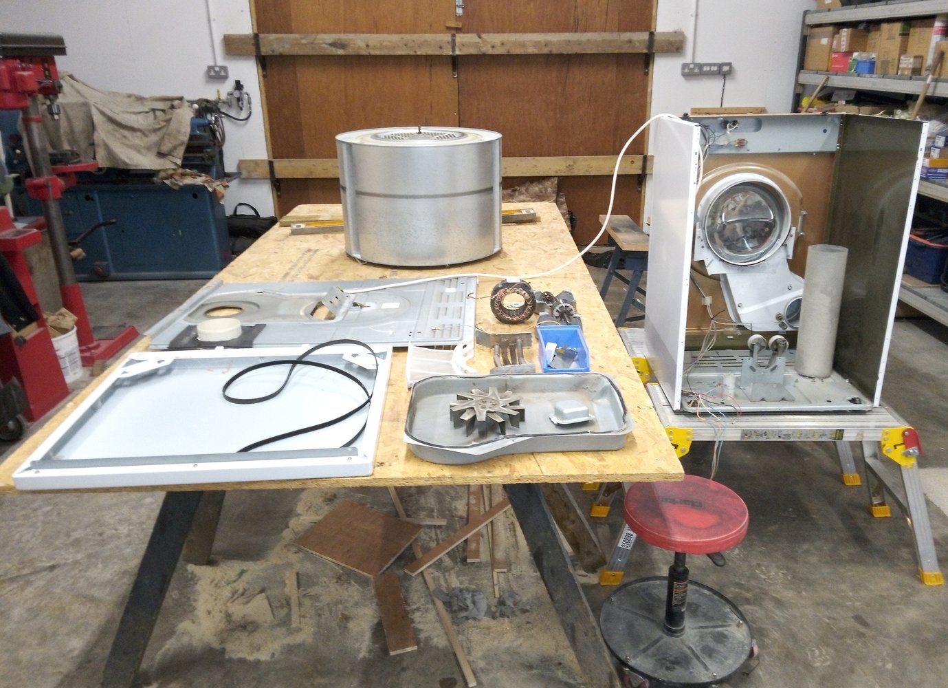 It's been a bit screechy for a few years but the other day it developed another noise so I decided to take a butchers. It turns out the new noise was motor bearings (well, one of them) which I've ordered for the princely sum of about £3.50 each. As long as the motor still works when I fit them, I'll splash out on some new felt seals, a drive belt, drum bearing kit and a heating element (I managed to break the old one by standing on it) which comes to about £100.