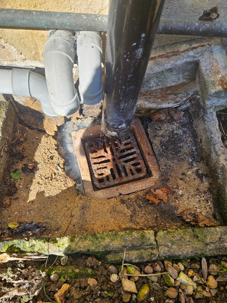 Normal concrete will be fine if you stuff all them pipes in a funnel - straight down the gully . So the conny has a chance to set .