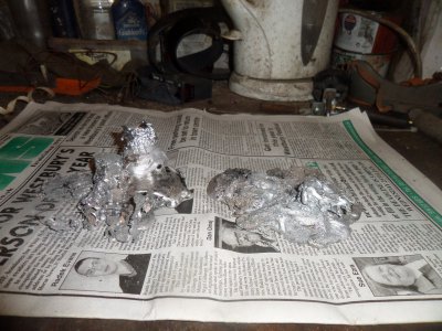 3 old hard drives, after I ran them through my charcoal pit.