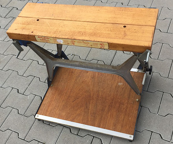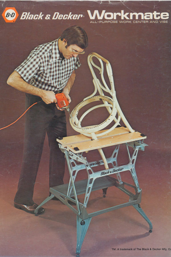 Four flip out legs now ensured exceptional rigidity and stability, while dog holes and four swivel plastic dogs on the top’s birch laminate platform now provided a whole new range of clamping positions. Black & Decker named their Mk2 version the WM325, which was produced at the Spennymoor plant in County Durham, and cost £24.95 in 1972. Its awe-inspiring design has been compared to that of the NASA lunar module, and was certainly breathtaking when it first appeared on the market.