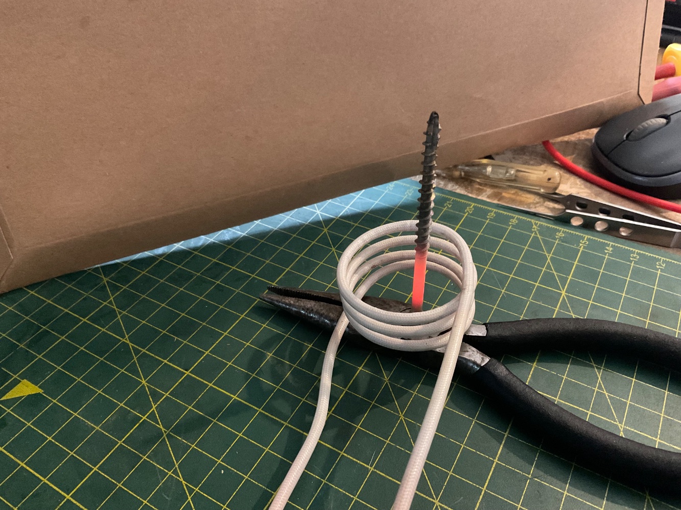 While heating the screw, it was drawing about 1.6A, equivalent to 380W or so. Power factor was close to one.