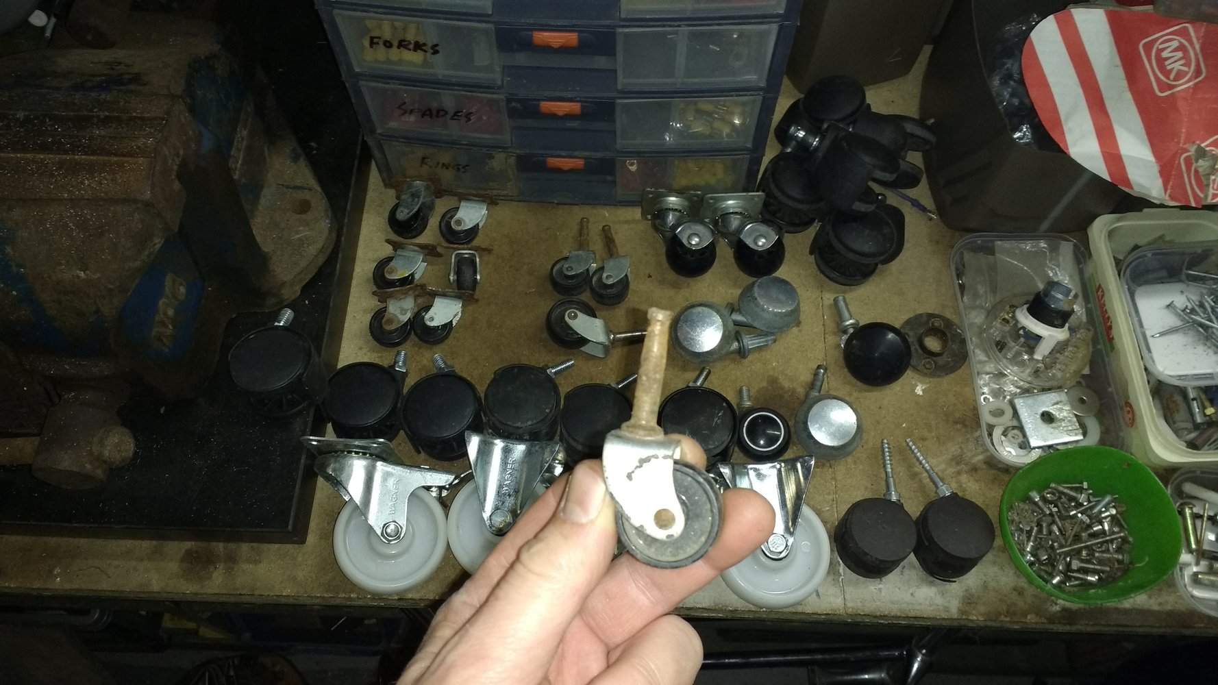 @Screwdriver got 6 diddy castors here, 32dia, nom. 3.8mm dia. D'you reckon they'll be alright for my rolling scrap drawer? Salvaged from something but scrap otherwise.