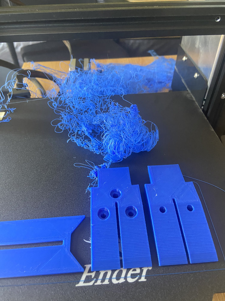 One of your parts came unstuck from the print bed, so the filament had nothing to stick to. Usually caused by the print bed not being clean or not being level as the first layer generally needs to squish into the bed to stick properly. I used to just wash the magnetic bit in the sink with a nail brush and then a bit of ipa.This happened, first time I put more than one part on the bed, think the bed temp wasn’t high enough.