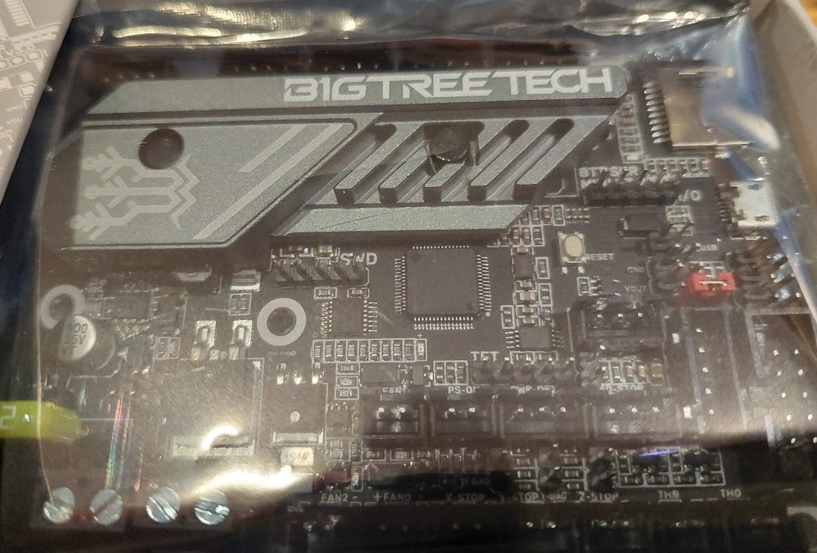 On the mobo, the 3rd and 5th pair of green PCB terminals each with twisted red and black now signal the MOSFET boards rather than going direct to the bed and extruder. (It was the 3rd one down that burnt out):