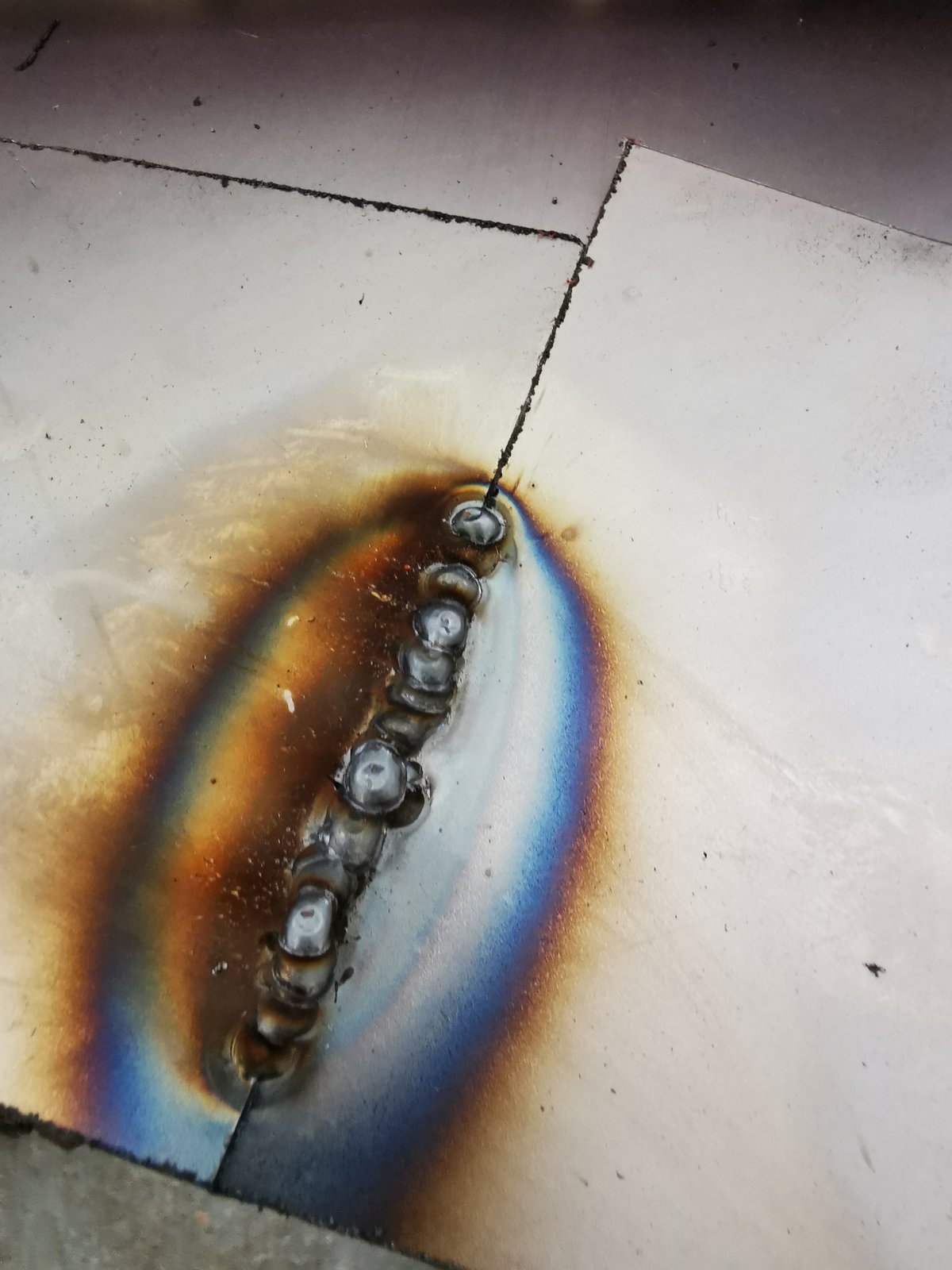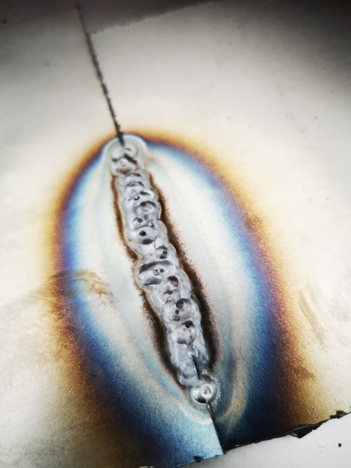 Started at it again yesterday, cleaned and grinded everything down, some is OK but lots of pin holes. Using 0.6mm wire, hobbyweld 5 and lowest setting it's still blowing through instantly. Even trying some folded copper pipe behind it but it's a mess.