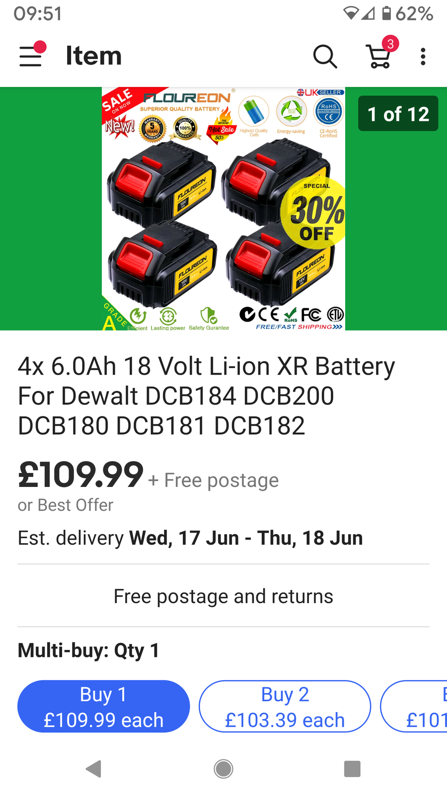 The real Dewalt 981 battery is £40 and for an old drill isn't worth it really.