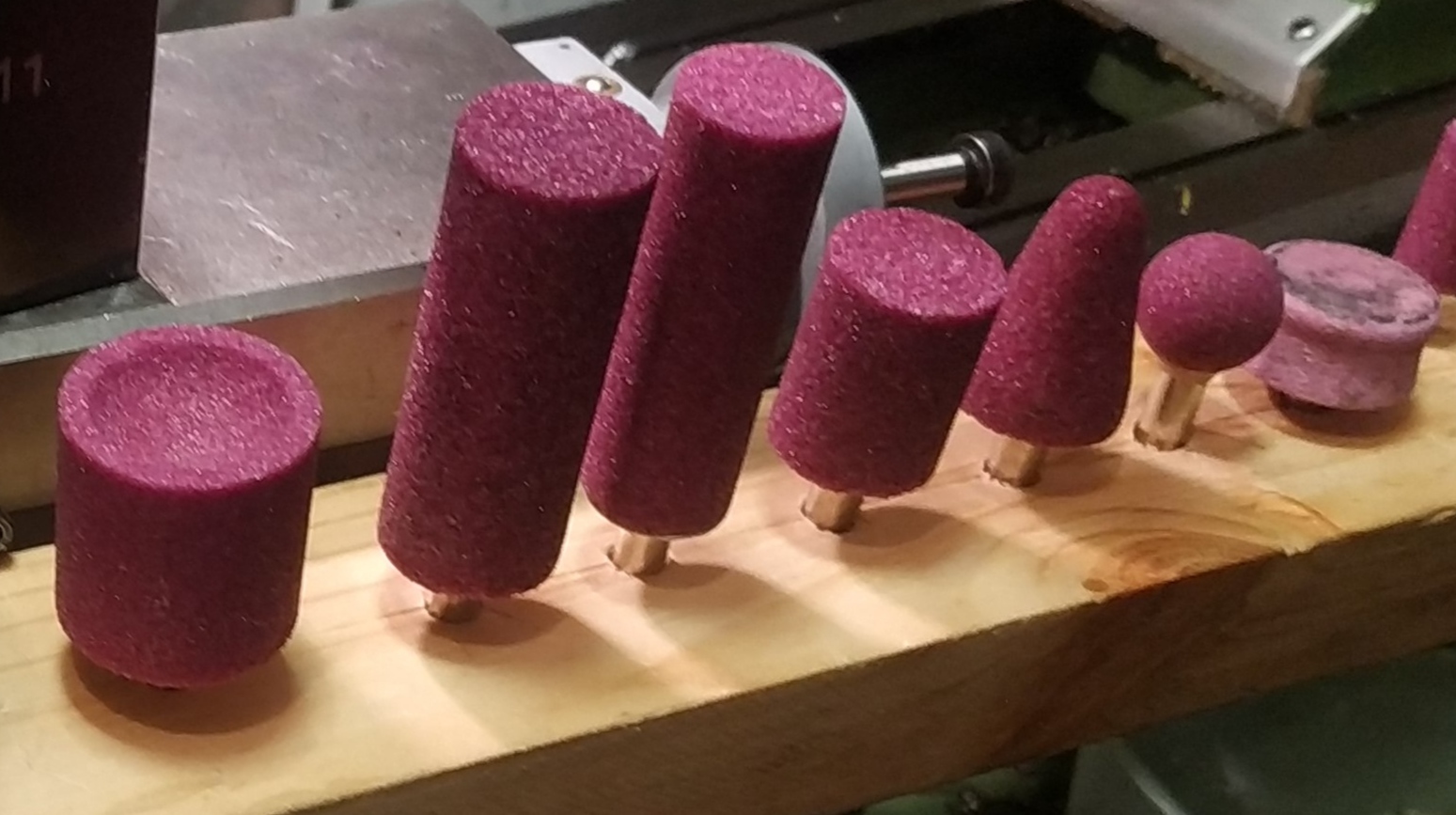 I will grab a few of those if the diameter is well over 20mm.You can buy die grinder stones with a concave ball end. I got a coarse one from zoro a few weeks back, bit too coarse for this. The worn, pink stone on the right is much finer, you could dress any die grinder stone with a diamond point.