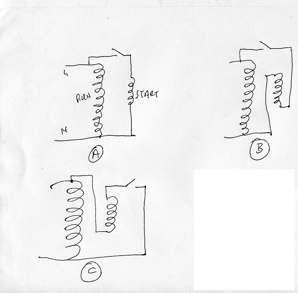 I'll have a look tomorrow if the resistance goes up do I just swap the two wires aroundRight, you have what's called a split phase motor. The image I posted still holds true, it's just that there is no capacitor. I think decca is correct. As a check, do you have a multi-meter? If so set it to a low Ohms range and then connect across the two red wires then open the switch. There should still be continuity but the resistance will go up.