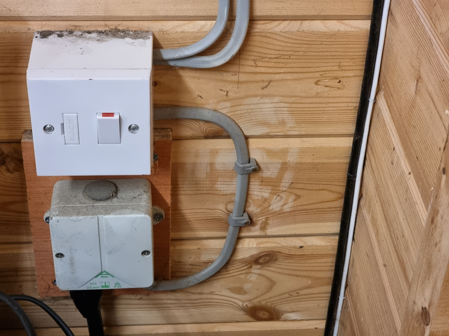 3. I'm not entirelty happy with the way it's been done. For instance one half of the workshop has an armour coming from the CU though an underfloor duct into a junction box, with a single T&E coming out of that into a fused switch, which acts as an isolator for not only the lighting circuit but also seven double sockets on a radial circuit one of which has a further spur off it