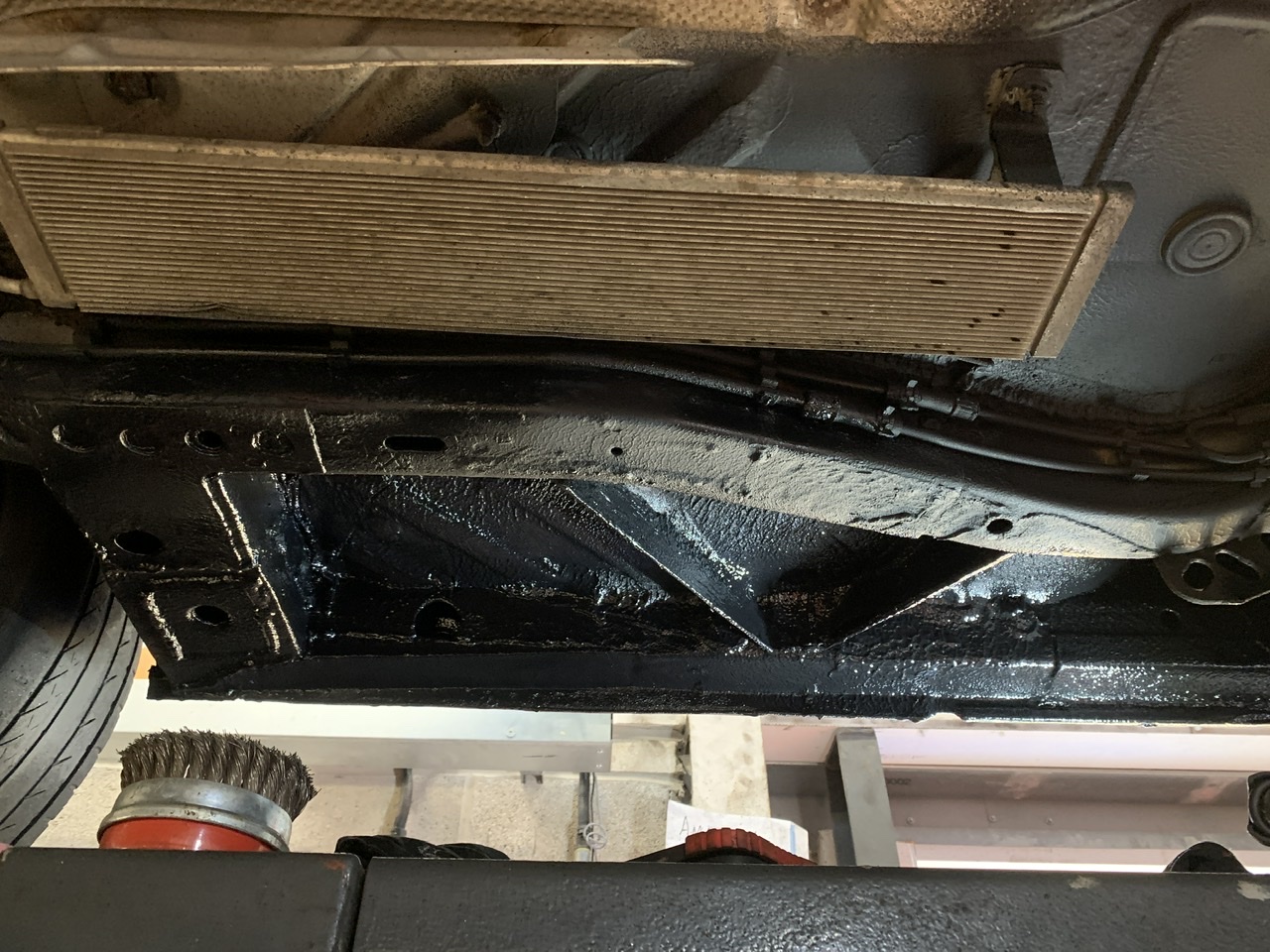 Anyway, my lad has started training at a garage and the guy (my usual mechanic) let us use the scissor lift so it’s a fair bit better than lying on your back to get it done.