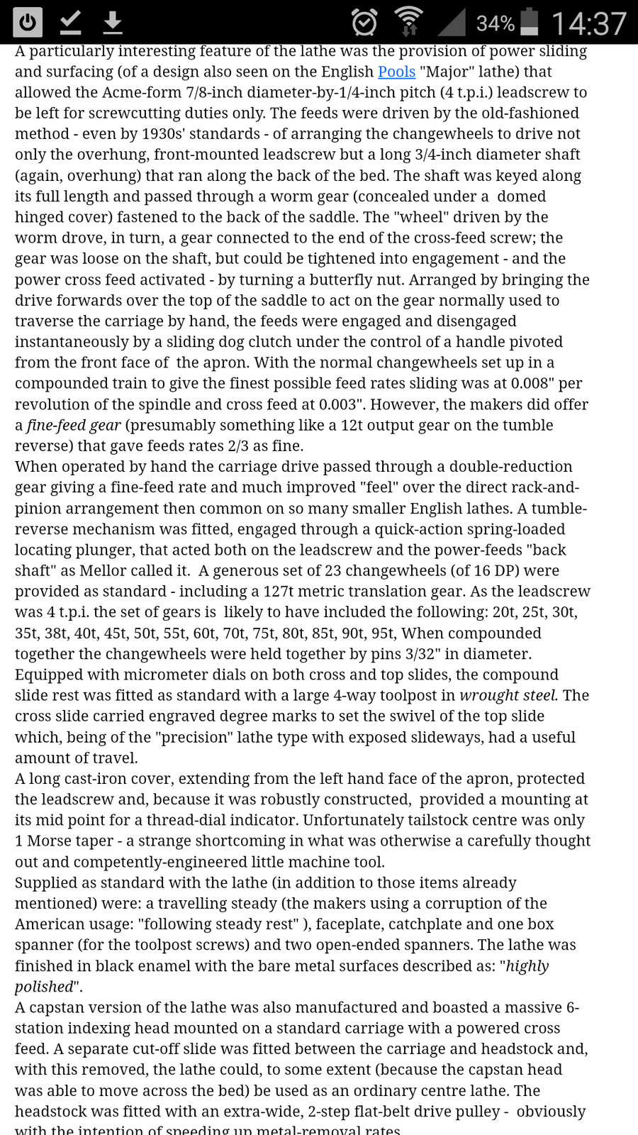 Wish mine worked like that. I wouldn’t have to swap them bleeding wheels about every time I went from a thread to a finish.Aye it's setup so the leadscrew is only used as yours is for screw cutting. See the link above. Explains it better than me.