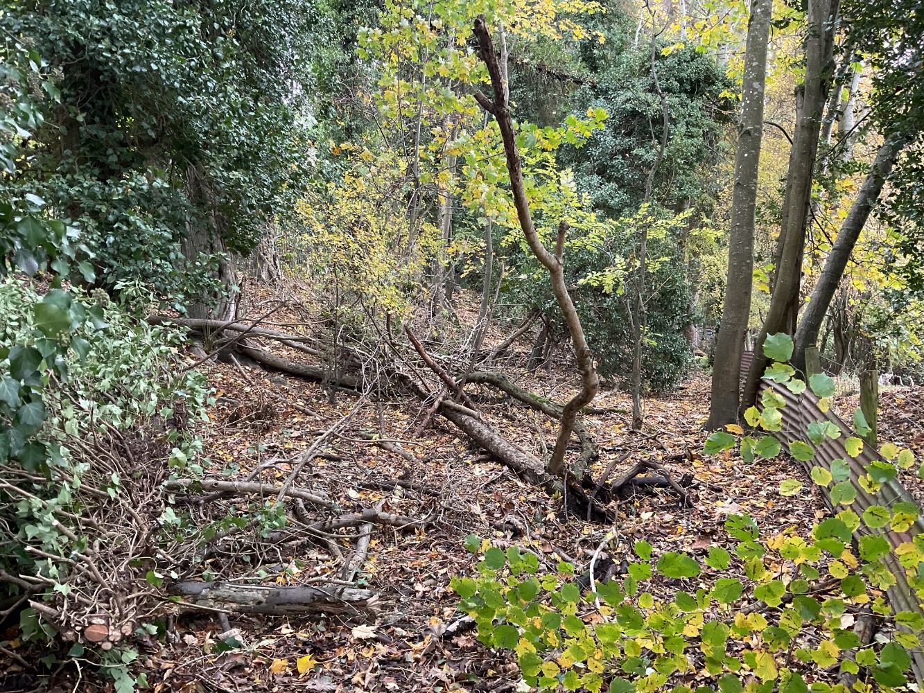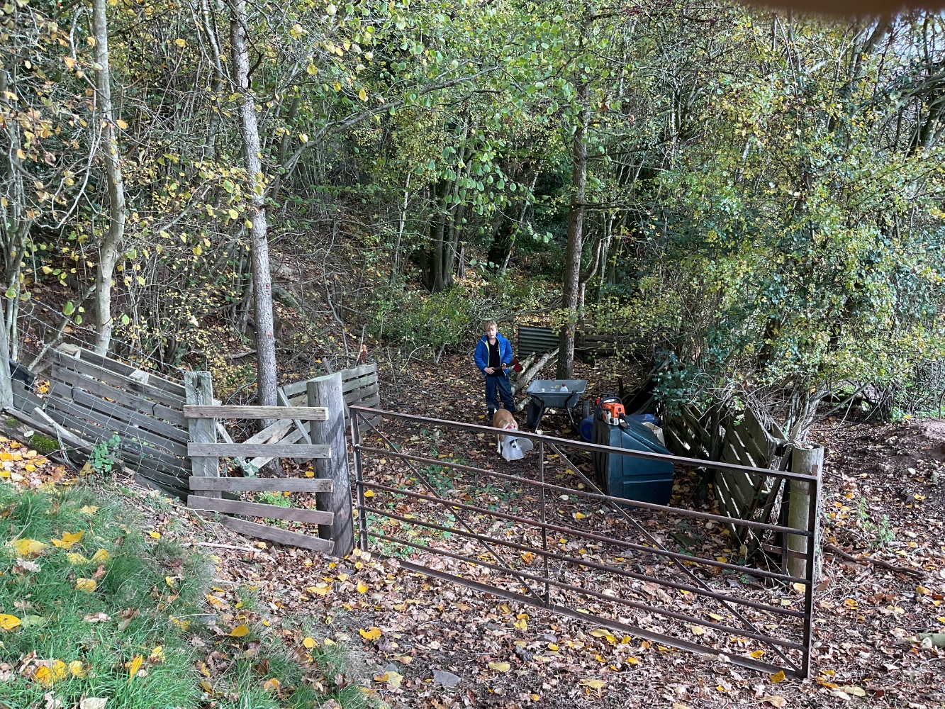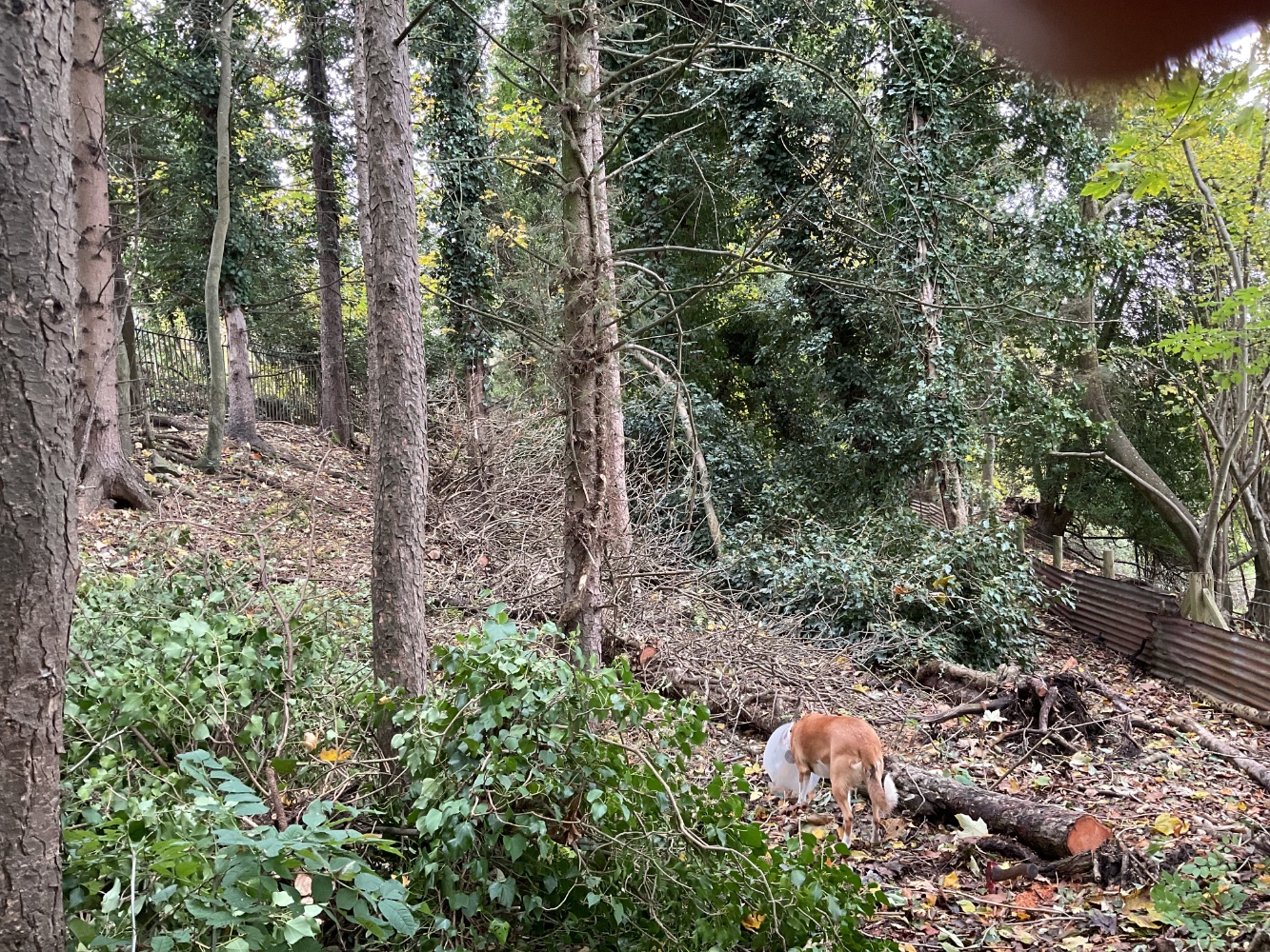 I’ve been ordered by the county council ,to fell diseased trees,particularly Ash,that are within striking distance of the highway,as usual a two week warning,which was 5 weeks ago,fat chance.Anyway this copse has been neglected for decades,plus lost significant daylight,so with some junior help I started,I’m not tackling the ash ,there within a few feet of our roadside fence and are big and tall,heavily ivy clad,to the point where it’s hard to see any ash leaves,but they’re there,just 40’ up. It’s hard going,partly on a short steep bank,continually having my feet hooked in branches and tough ivy stems. Several trees have fallen,some snapped half way up then tangled into each other,so have to be cut in a sequence and then pulled at the base. I’m 70% through with the ones I’m tackling,then some dragging with a machine,clear the ground of brash and cord lengths before I call the experts for the big trees. A snapped chain has ended play for too.