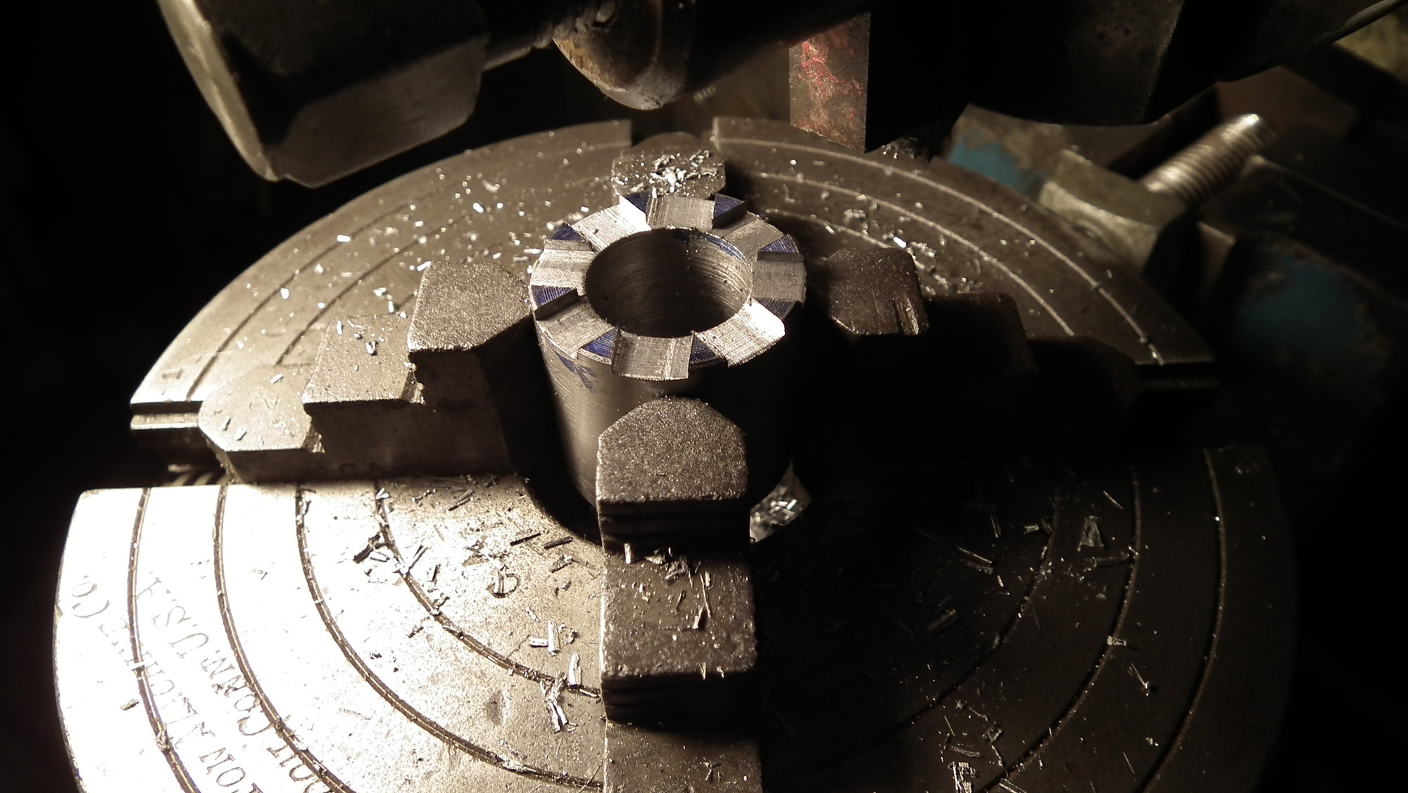 Tricky set up with over size and completely incompatible but free (donated to the cause by a mate) dividing head.