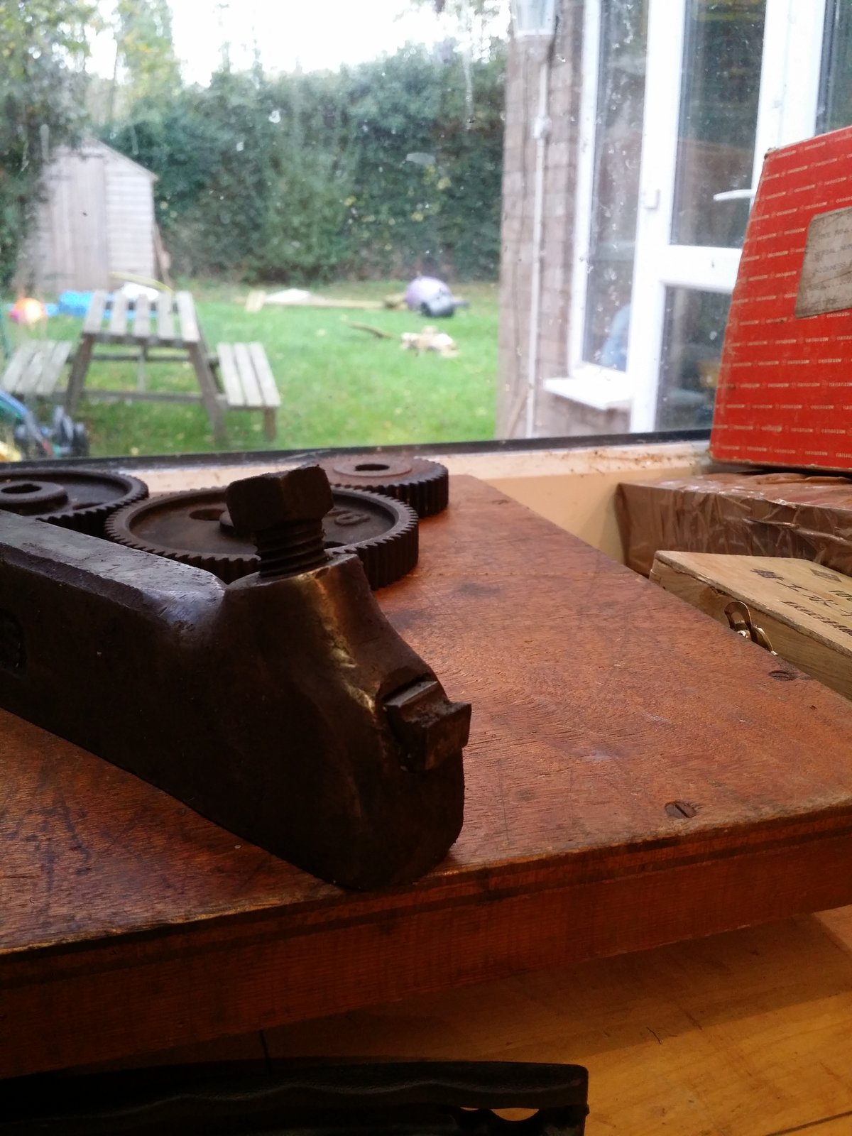 All held up with a nice £4 boot fair machine jack, looks like some clever chap made it in his shed, lovely and smooth to use due to the bronze threaded insert, respect.