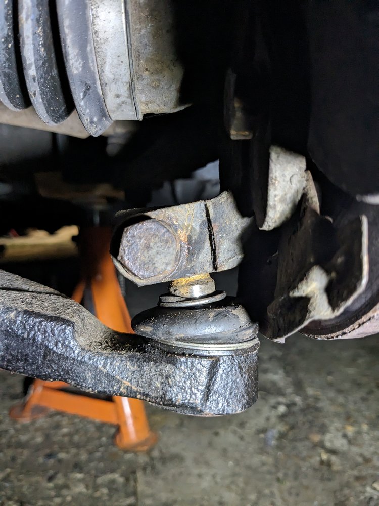 I think it wasn't fitted correctly as that's a shiny new wishbone...Hows that pulled past the pinch bolt?