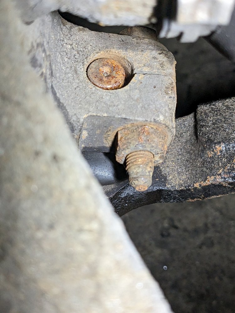 in the first 2 pics, to the right of the bolt, is that not a crack, looks like one to me.I think it wasn't fitted correctly as that's a shiny new wishbone...