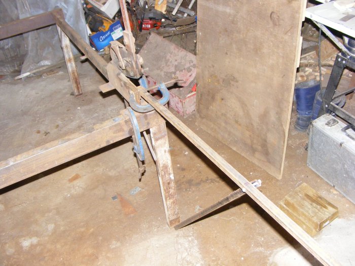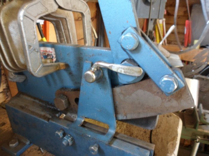 Job done, typically a ten minute job took an hour but worth the effort. Next thing is to make a small support to go a few inches to the left of the shears to help get the height right. I also cut a slot in the thingy so i can see what I am doing when making small cuts.