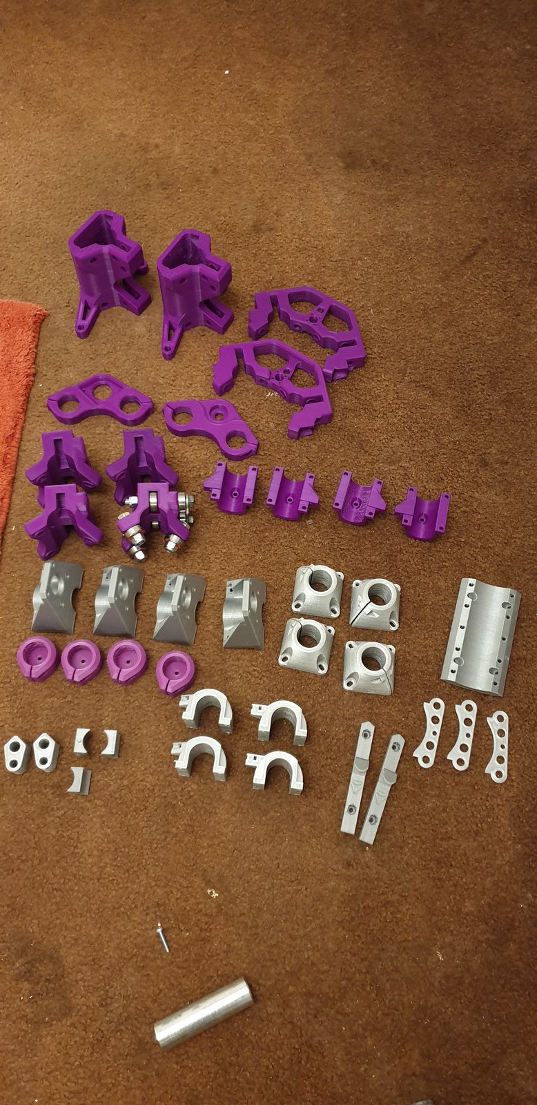 The parts will take many many days to print, and the best part of 2 spools of filament, you will end up with a pile of bits like so: