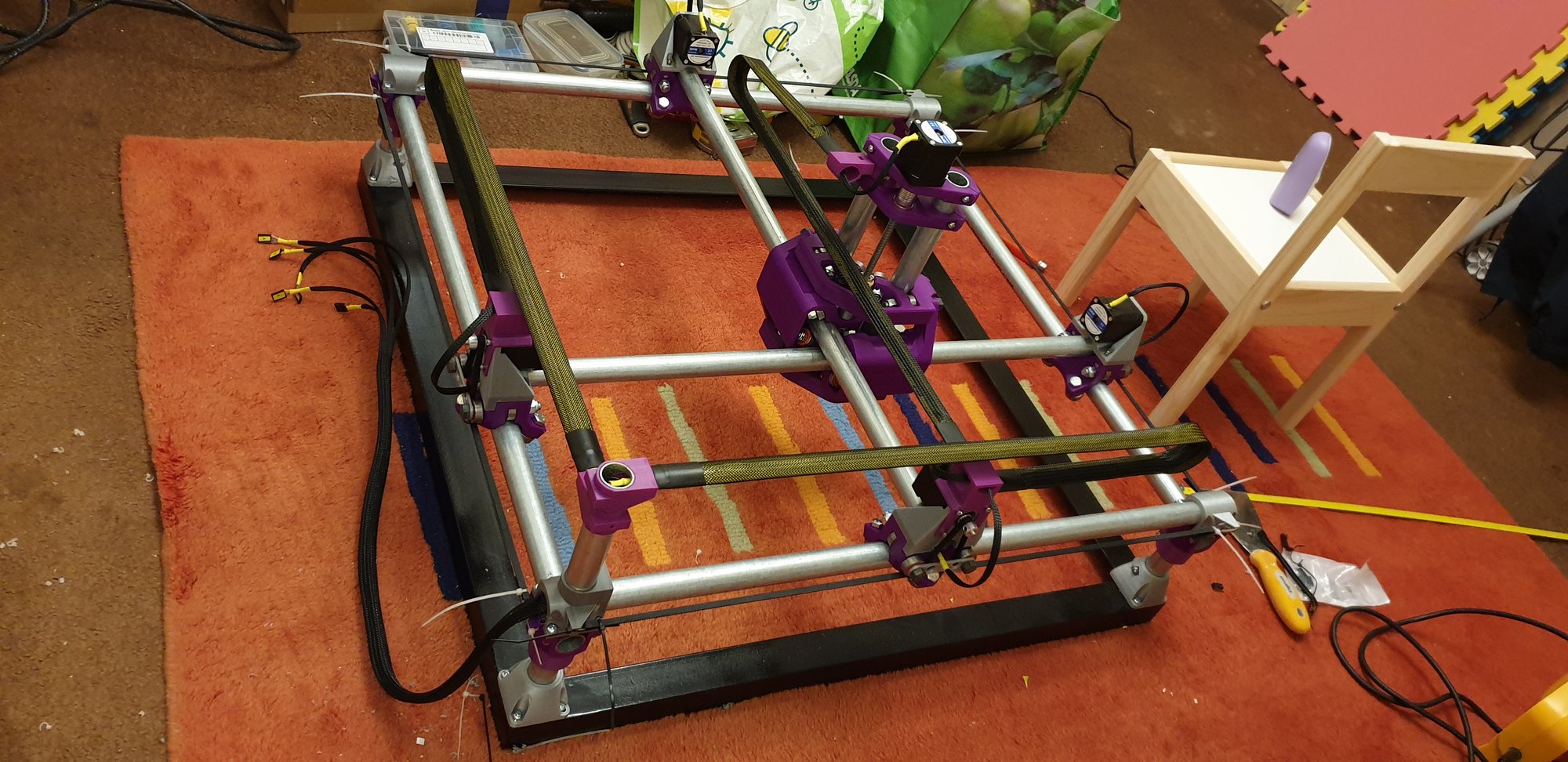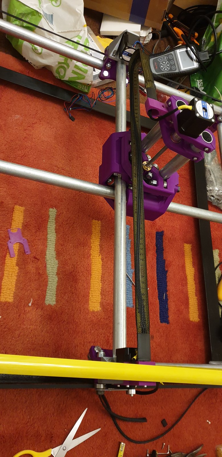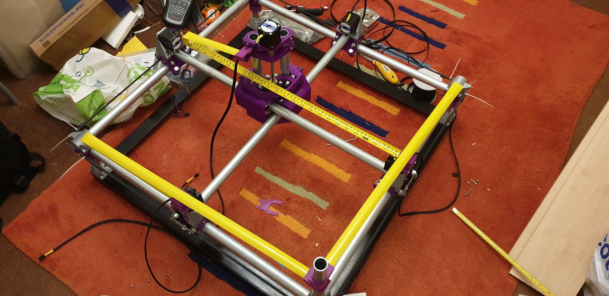 I started off just wanting a small scale dodad i could stash away when not needed, instead of having a dedicated table and whatnot, so set off calculating the maximum size i could make it from 2 x 3M lengths of conduit. Think it was about 720mm square with a working area just shy of 500mm square, there is a cut calculator available. I wont go too much into detail about the nuts and bolts as its done to death on youtube and the MPCNC forums.