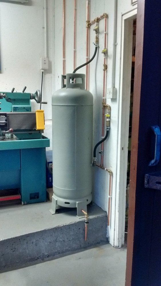 Ideally your line running to your filters should also be 1.5 times or more larger than the line out that feed the pressure pot or spray gun etc. Minimise restrictions in your airline. Pic of how I made my propane cylinder.