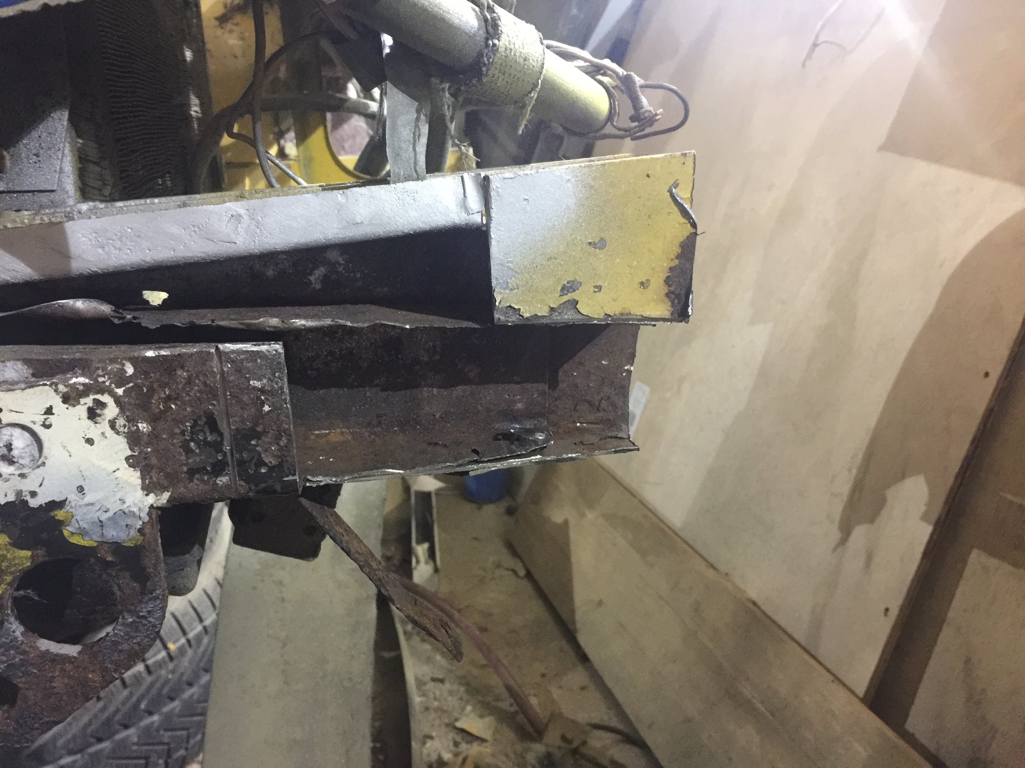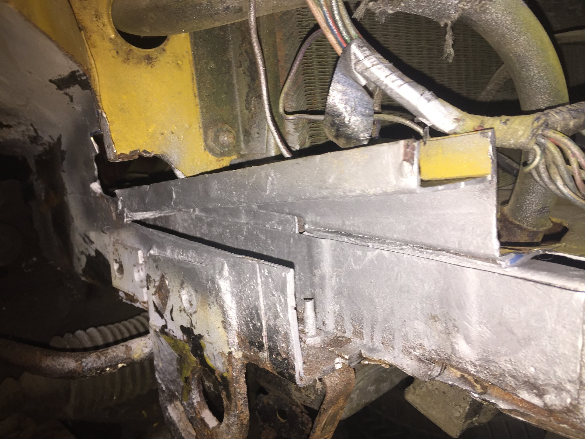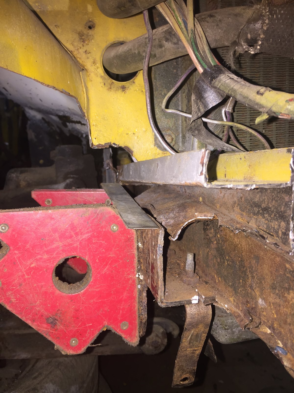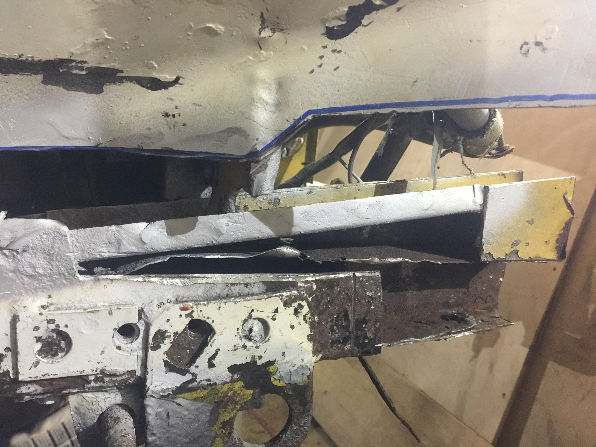Hi JP Cheers mate The top pic in post 244 shows it best I think for ease of manufacture the same sheet went horizontal through and upper/lower chassis rails welded thru it It extended further to the left untill it go chopped up to the wheel arch repair piece ... Problem is I can't join it as its too far gone further to the left in a side on pic