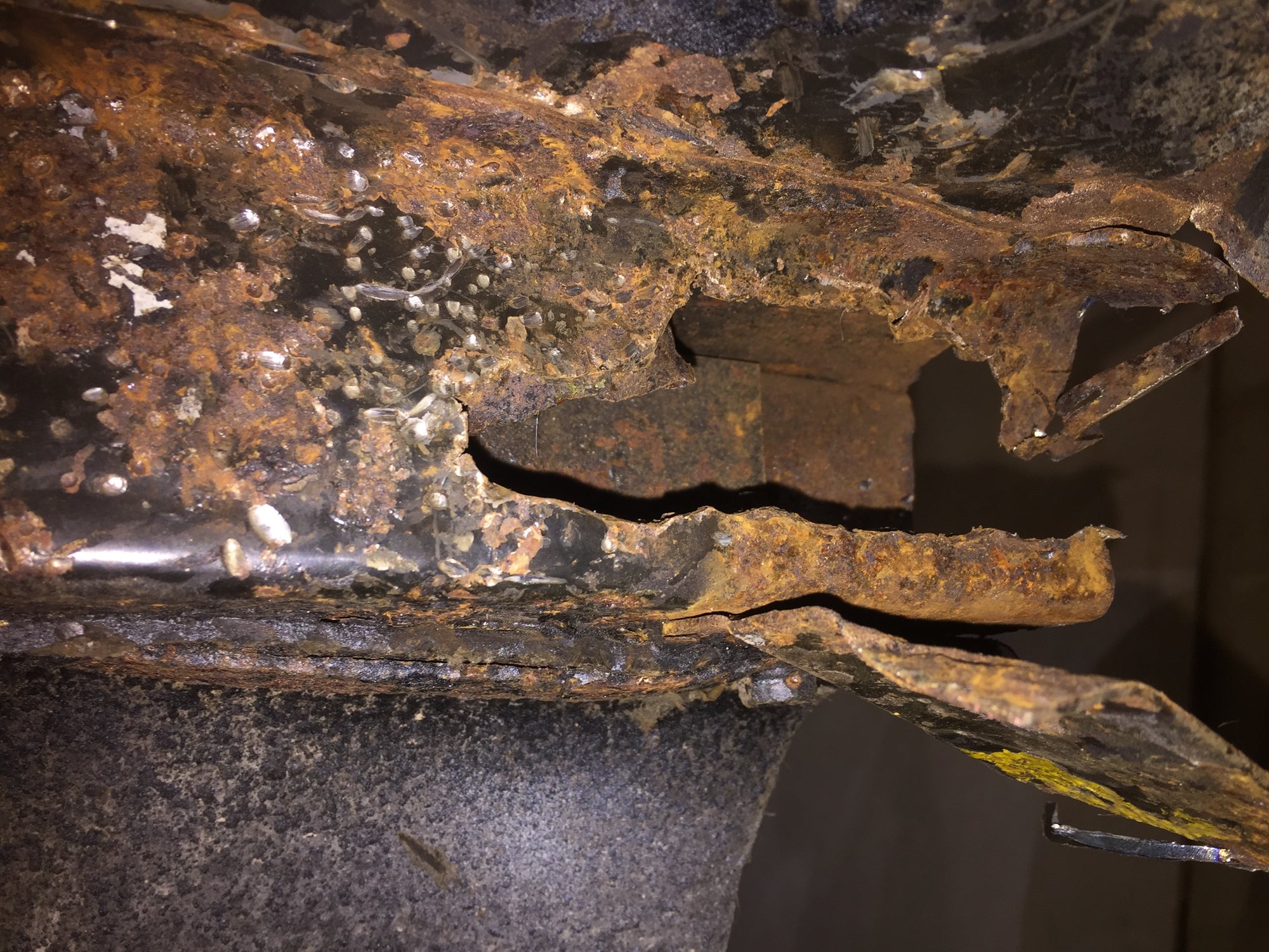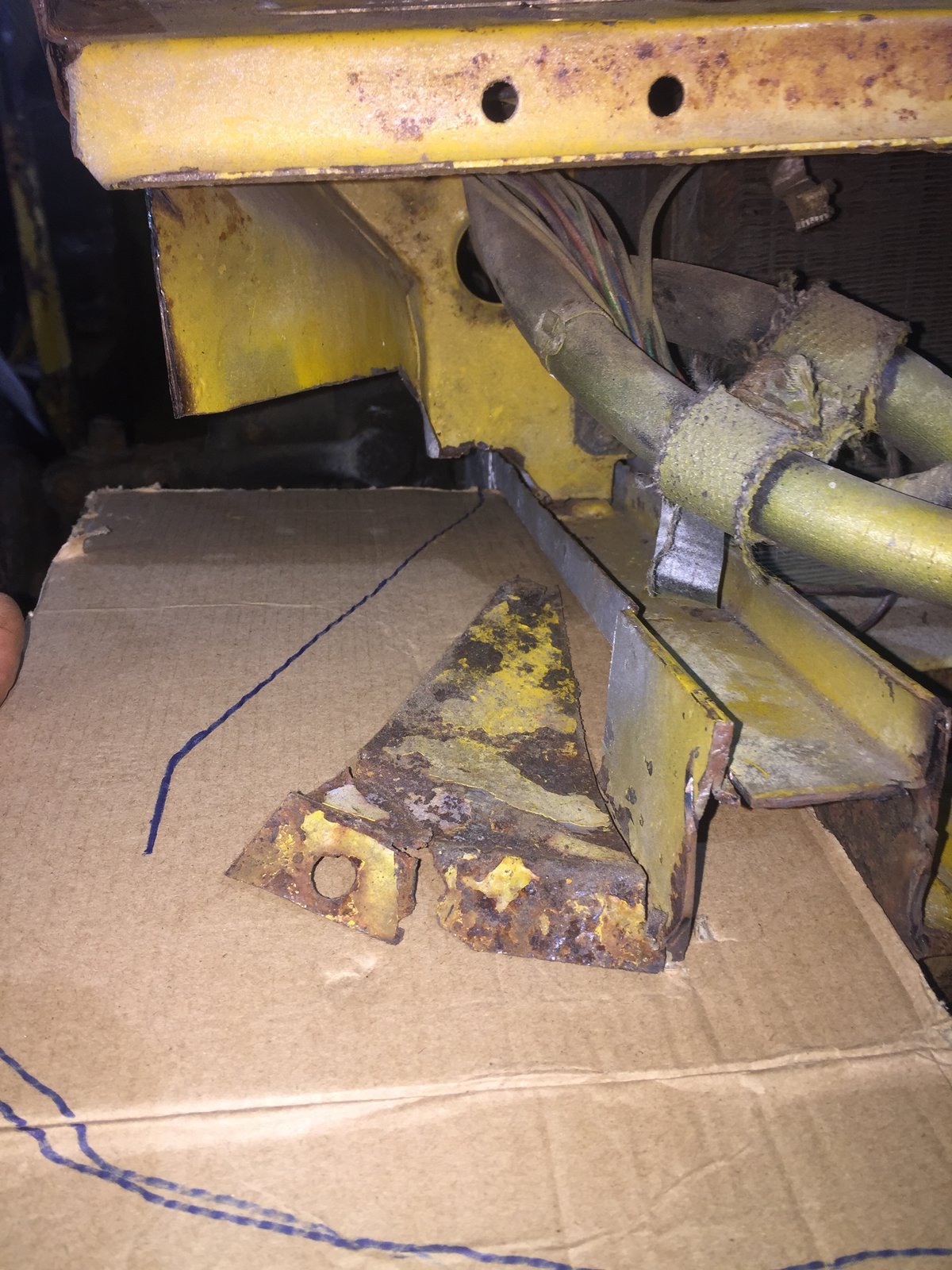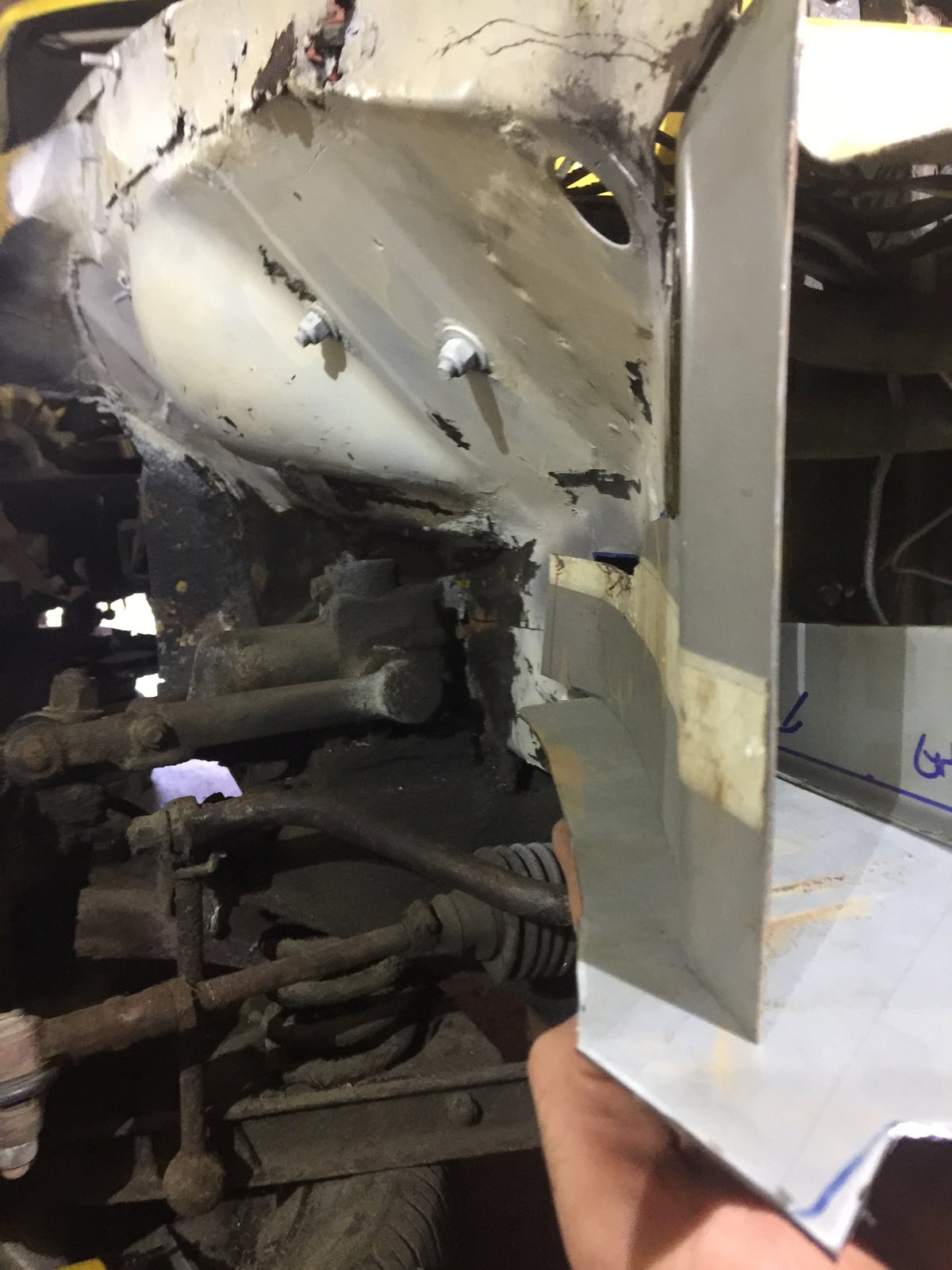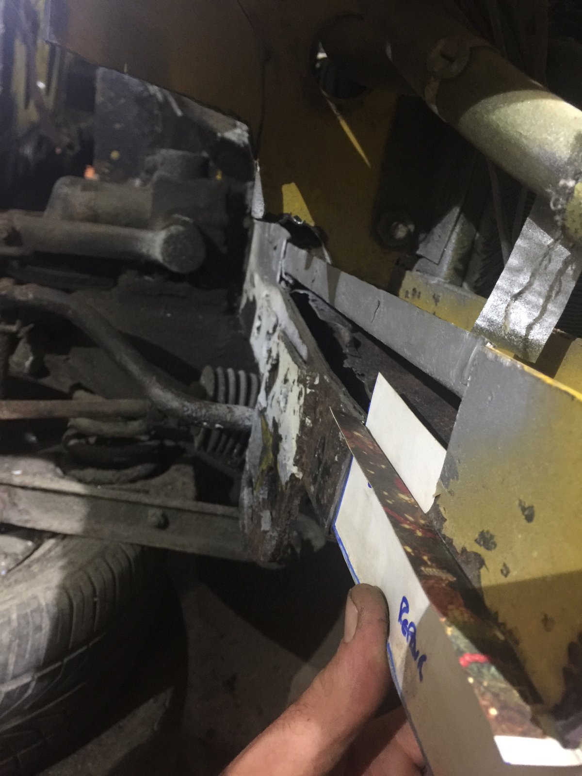 Hi JP Cheers mate The top pic in post 244 shows it best I think for ease of manufacture the same sheet went horizontal through and upper/lower chassis rails welded thru it It extended further to the left untill it go chopped up to the wheel arch repair piece ... Problem is I can't join it as its too far gone further to the left in a side on pic