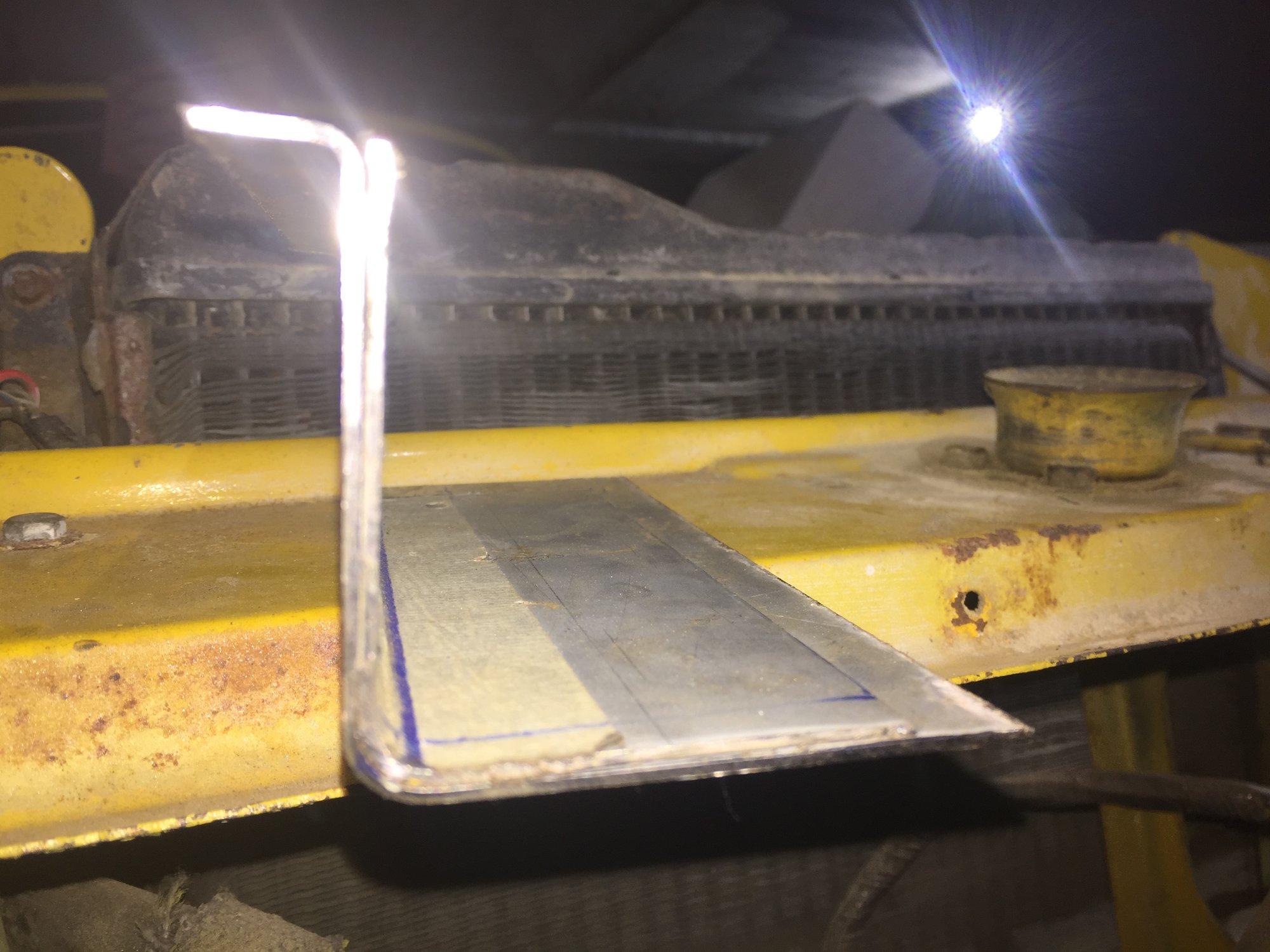 Managed to catch an hour while SWMBO was out Top chassis rail cut back 3 “ ready for the inset chrome grill .... front valance prepared ready for the new steel ... or so I thought till I looked at the photo again