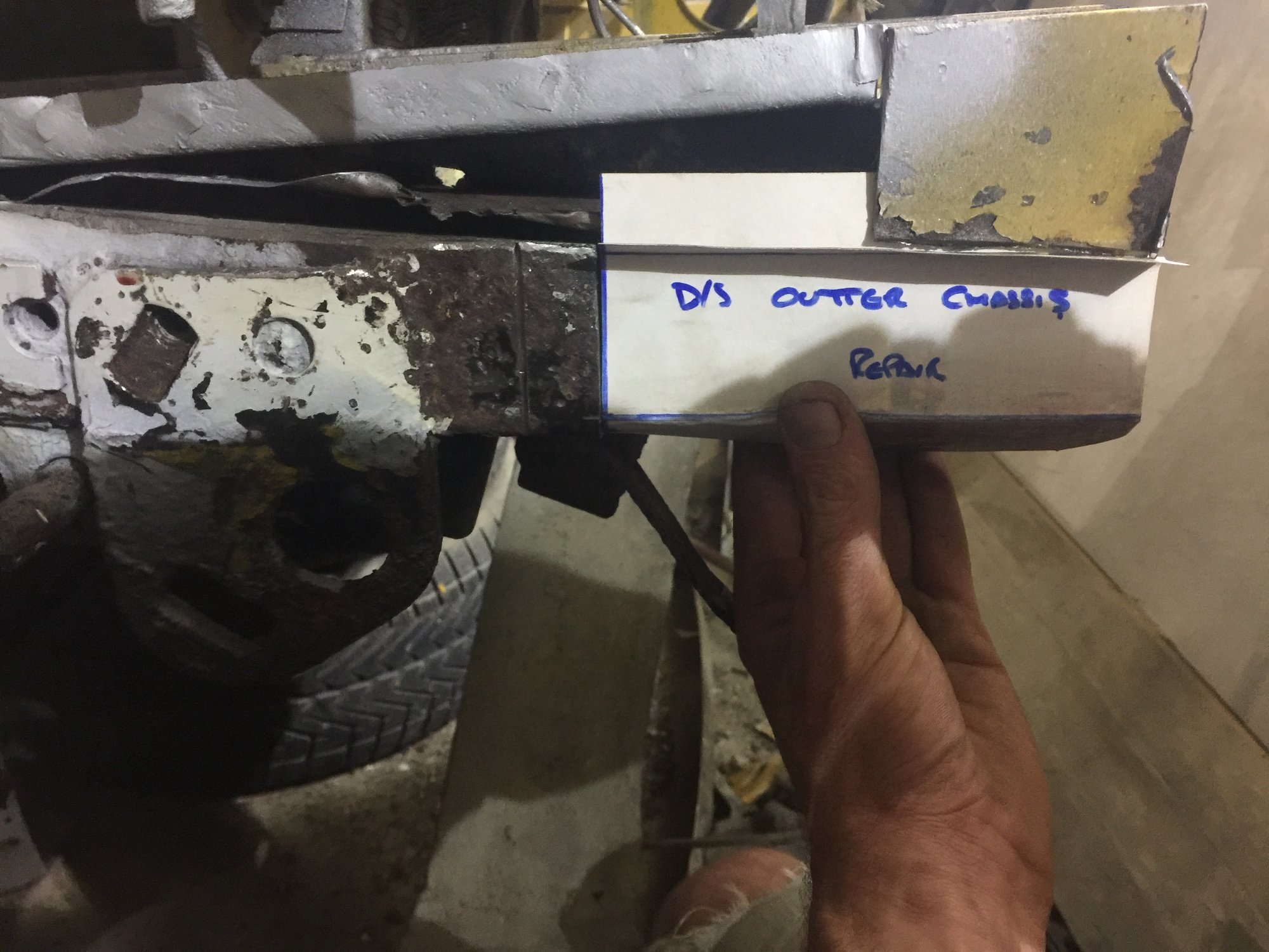 HopefullySoon Member Messages 788 Location Heywood Sep 21, 2018 #248 Work rolls on on the chassis repair From the inner / outer cardboard templates for the chassis repairs steel ones were made 7B20E890-650E-40BE-8617-6BCA2C3EC24E.jpeg 299.8 KB · Views: 66 C6D2E44D-FC73-400F-97A0-4B4E57C4F449.jpeg 402.1 KB · Views: 75