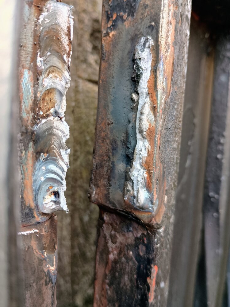 I then tried to close the gate to weld up the other side but could feel the hinge wasn't moving. The weld snapped.
