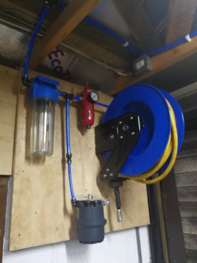 I did a similar revamp to my compressor recently but also added a precooled , basically used a generic oil cooler and AN10 hose and fittings put between pump outlet and main tank and situated so the air flow from the motor cools the rad...... huge difference in temperature between the inlet and outlet on the cooler and far less water in the tank.