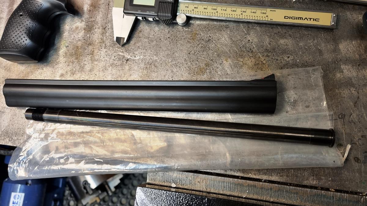 I had ordered O rings with a suitable size already and they had arrived in plenty of time, inserted into the piece of barrel and the threaded rod tightened up the mandrel was wedged firmly, this might just work you know!