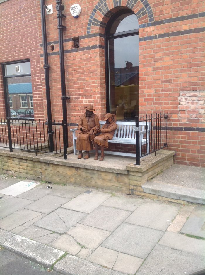 Just thought some of the artists among us might like to see these figures that are sited outside a local galleryI posted a 12 foot fisherman by the same artist a while ago, they appear to be made from 4mm corten steel and look pretty good once they have weathered a bit,The artist has a website,his name is Ray Lonsdale. well worth a look.The Grandmother is passing the little girl a sweet.