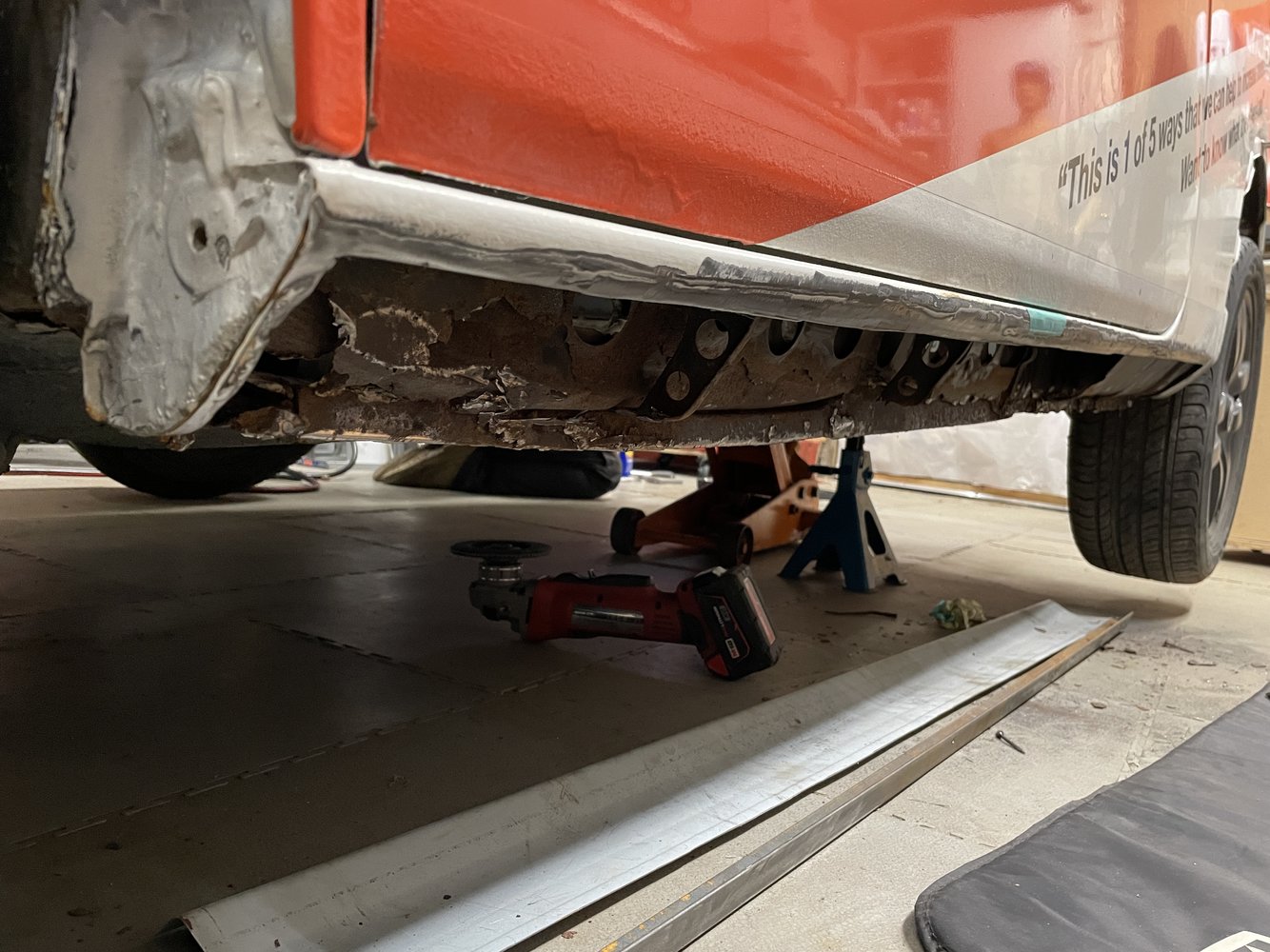 First things first, I have managed to get a sill made to shape, well there or there abouts as there are no body parts for the vehicle. I have taken few images so you can see what I see but a welder near me (he welds gates, not cars) said to be to put a 90º angle along the sill and screw it in place, that will give me a nice solid piece of metal to weld to and run a weld along that with my new sill. The problem I find with this is after reading up on it, I'm under the impression that a sill has to be welded, not bonded, screwed or any other type of fixing other than a weld, is this right?