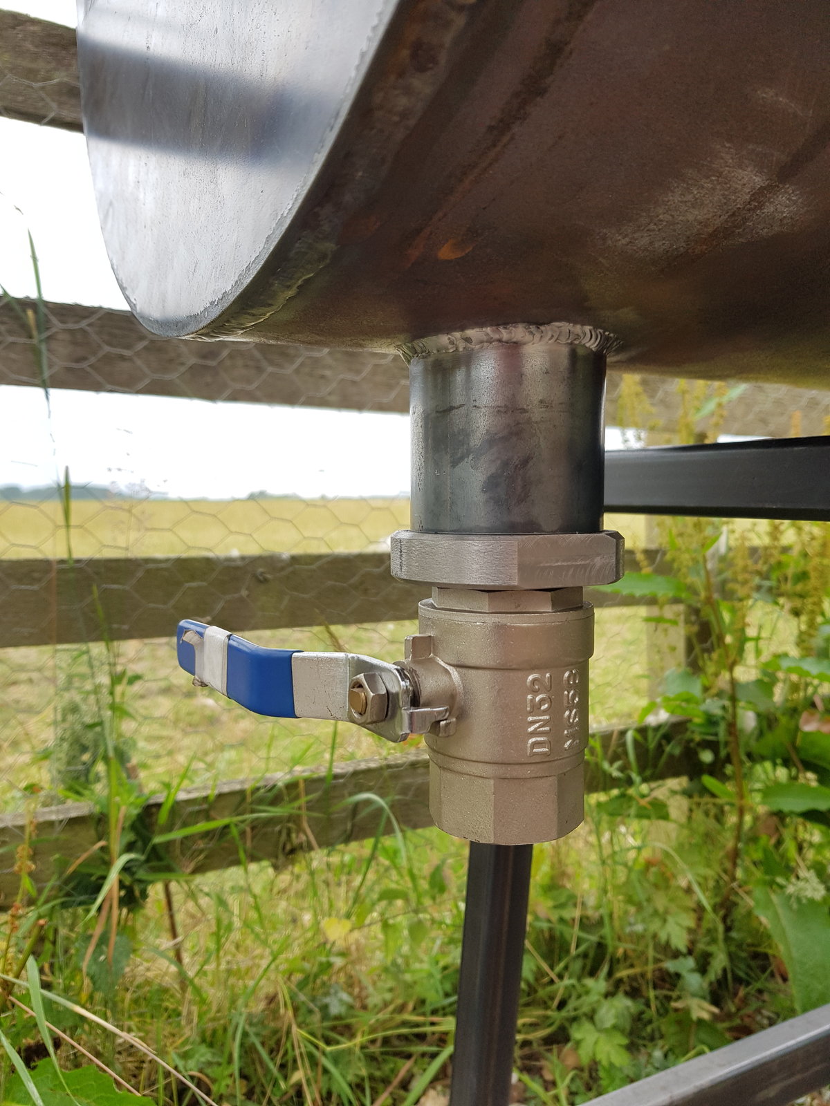 Taking on-board the advice from @gaz1, am hoping this will give me the best of both worlds, as I can just crack the valve open while its hot to drain, and unscrew as needed for scraping out. The welding is not my best (could not seem to find a good position under there), but don't think it'll be going anywhere..