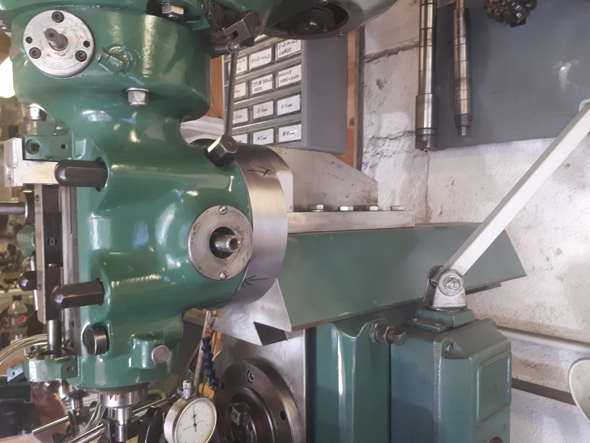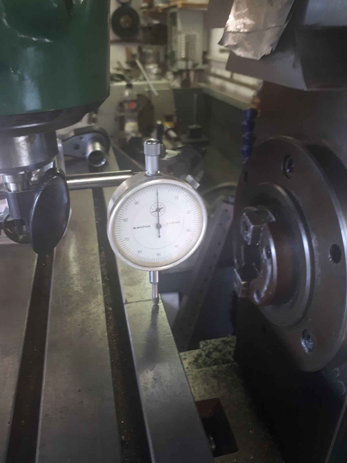 So the last few nights i have been bolting the head on and seeing how it is for squareness to the mill table. I trammed it first left to right, and get it set to zero using a dti in a collet in the spindle, then i swung it 90 degrees to see how it was fore and aft.