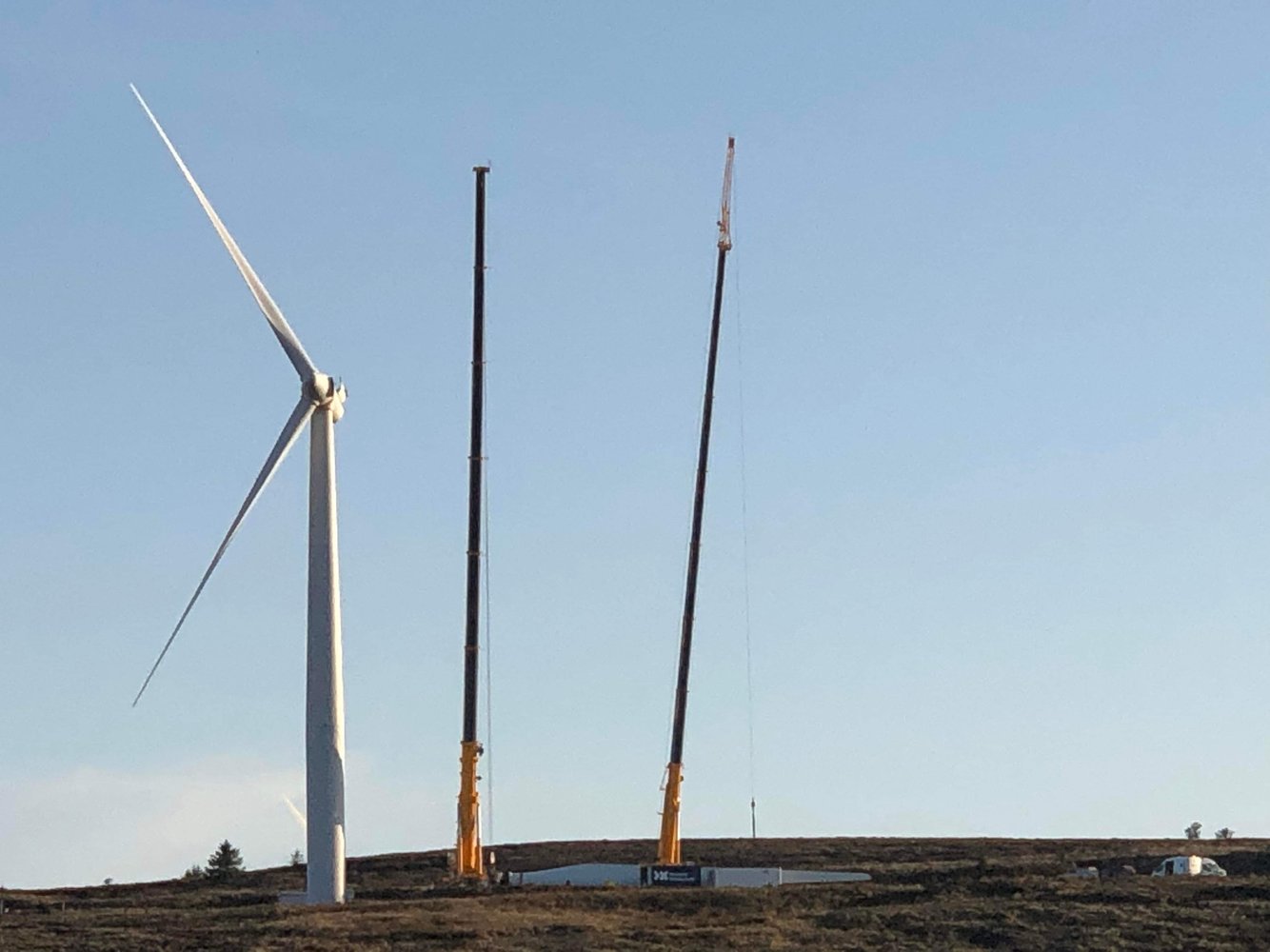A few years back I was delivering to and collecting from White House Wind Farm, just past Kennacraig, and as I have various bits of paper that say I can wear a harness and do things which quite frankly would frighten the bejesus out of me, I was given a chance to climb up the inside of one of the turbines and admire the view from the top. I politely declined as I would have been a gibbering wreck and might have embarrassed myselfThese havent lasted long, on the windfarm next to where the Oshkosh was delivering bits to.