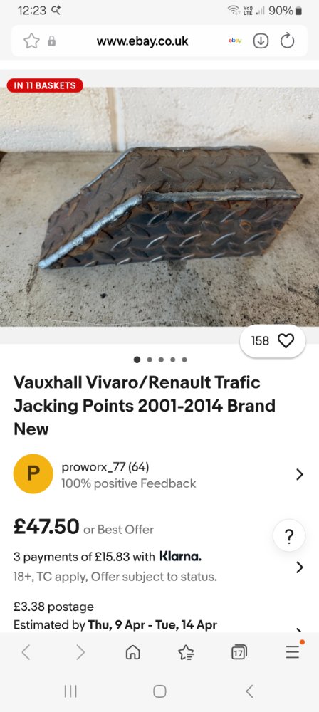 Bargain compared to these -- Renault Traffic, Vauxhall Vivaro, Nissan Pri Mk2 Front Jacking point 2001 2012 | eBay UK 1x Mk2 Front Jacking Point for Renault Trafic, Vauxhall Vivaro, Nissan Primaster 2001 to 2012. If your not sure if your is a Mk2 or Mk3 on a 13 plate. Mk2 75mm wide Mk3 65mm wide. It's only a light cover and thinners will remove it. www.ebay.co.uk