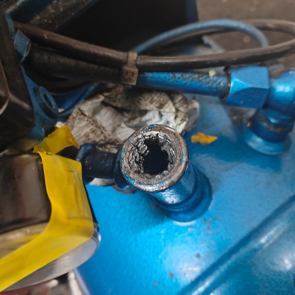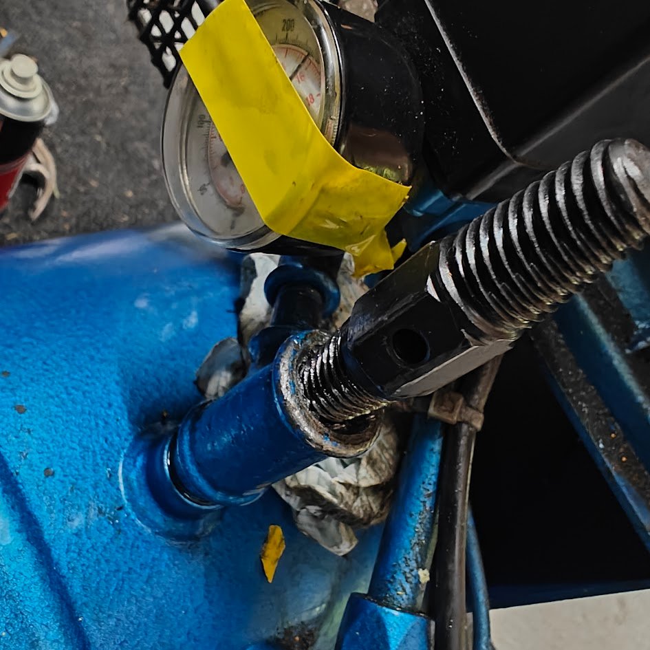 I have tried what I can removing it, part of the thread is stuck in the hole. Does the blue part going into the cyclinder come apart also so I could change that?