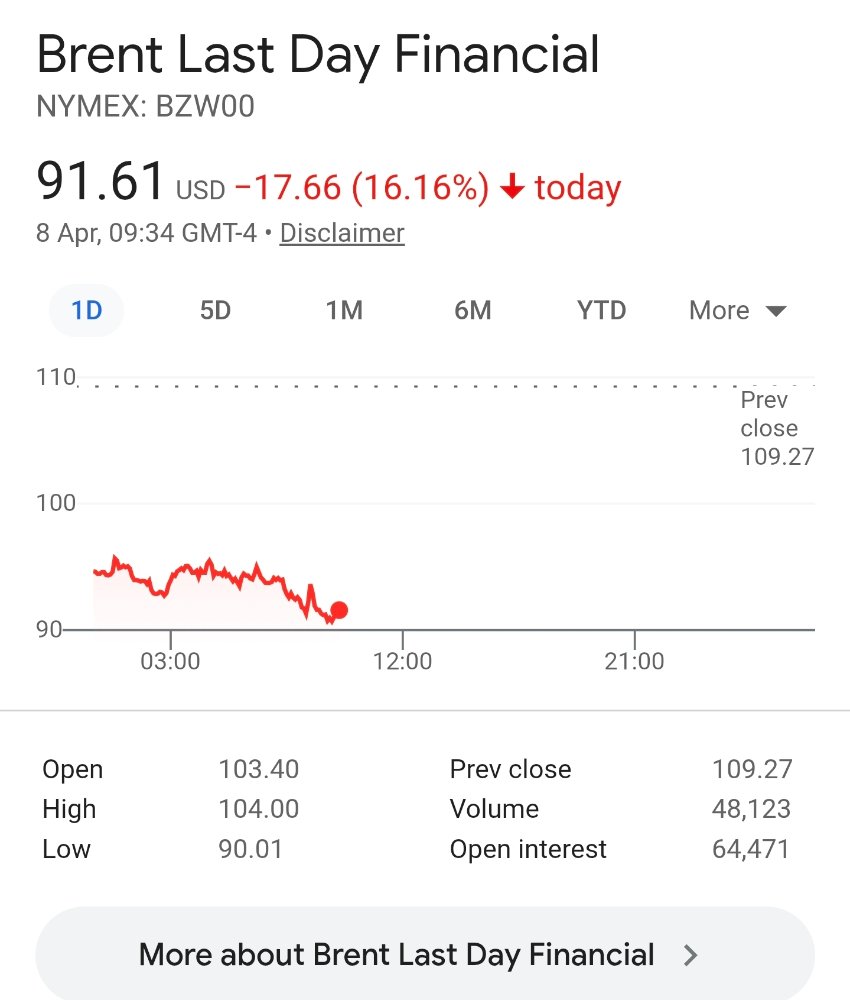 Markets have since dropped, but it will be a few weeks before the new prices get to the pumps, I imagine.