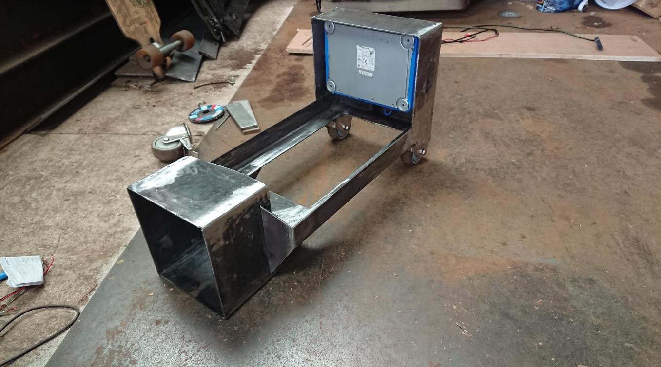 So I've been making this object, it's a subwoofer on wheels, with an amp and a battery.