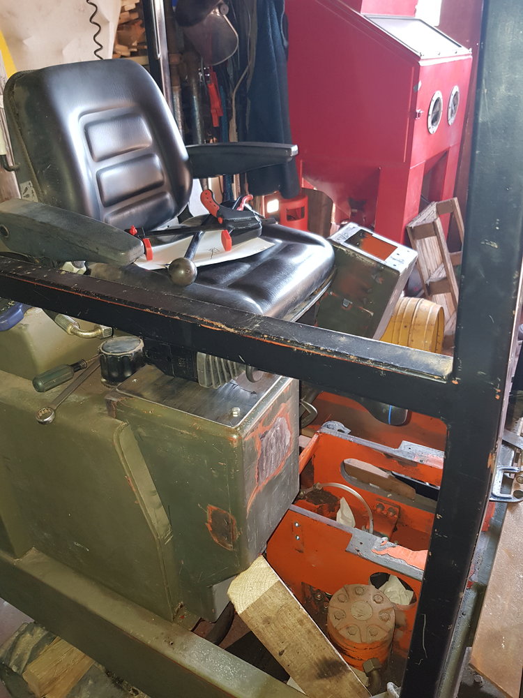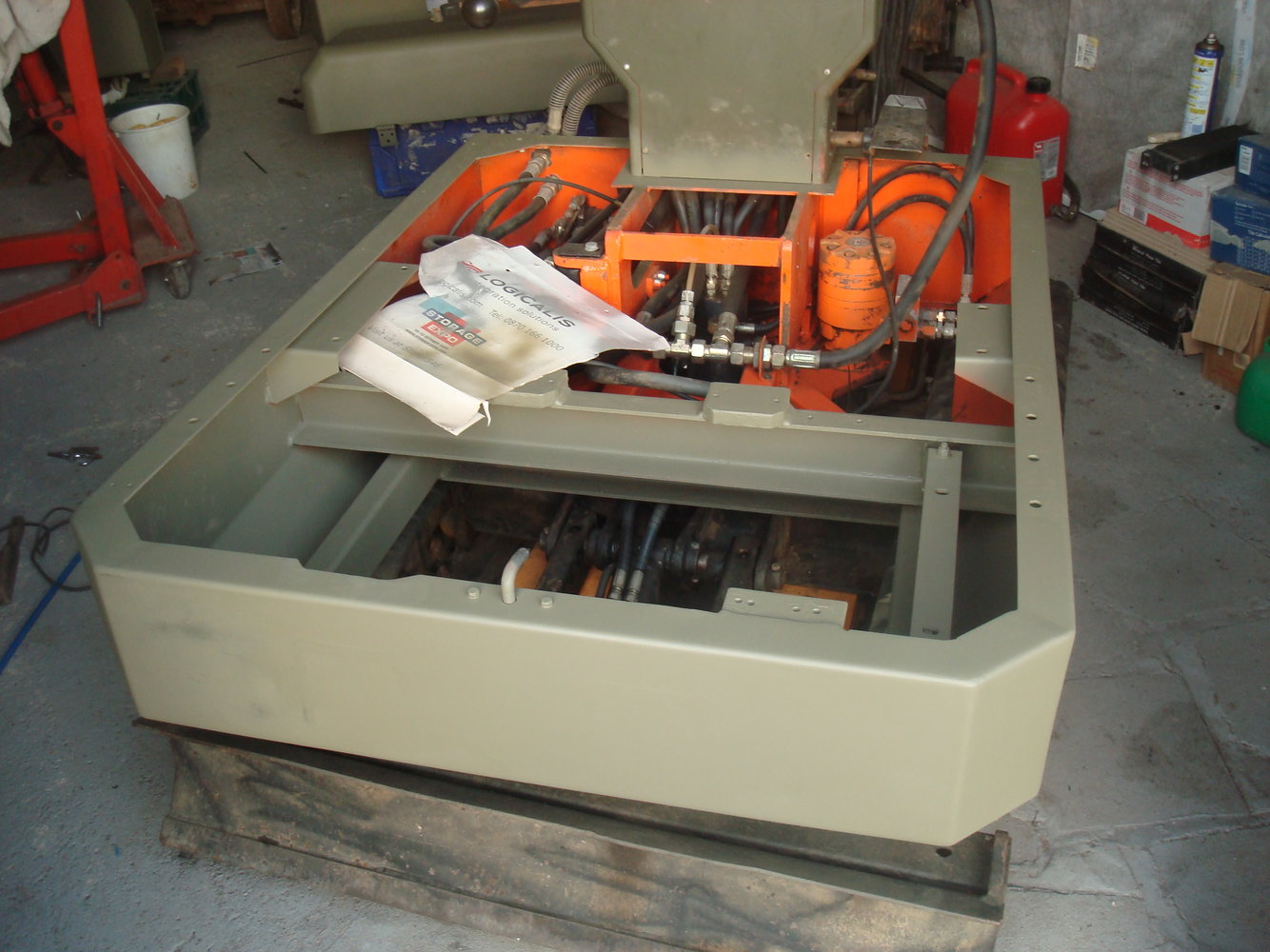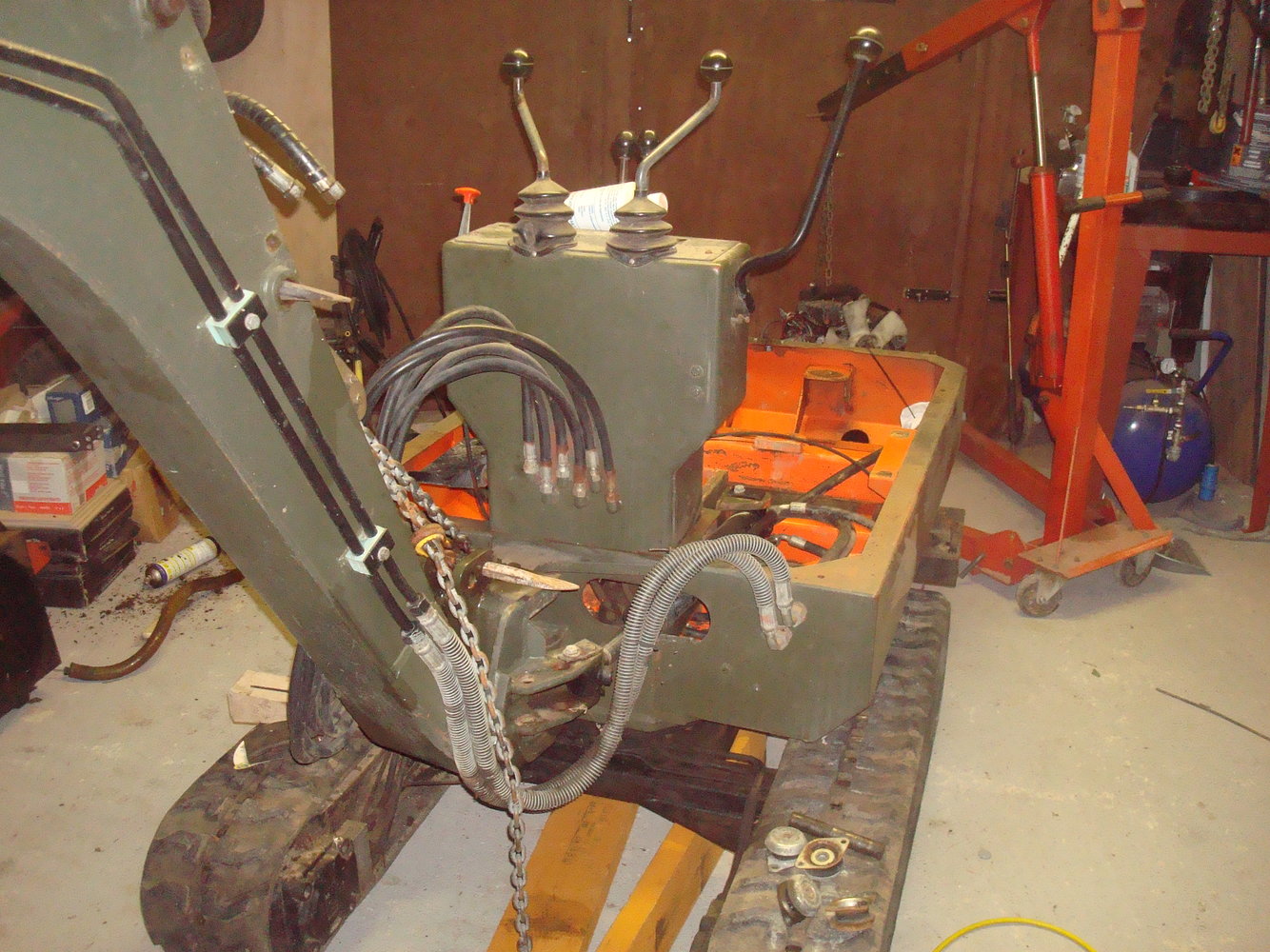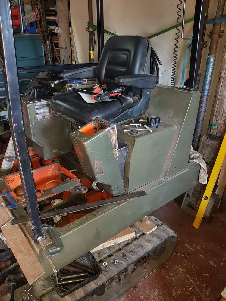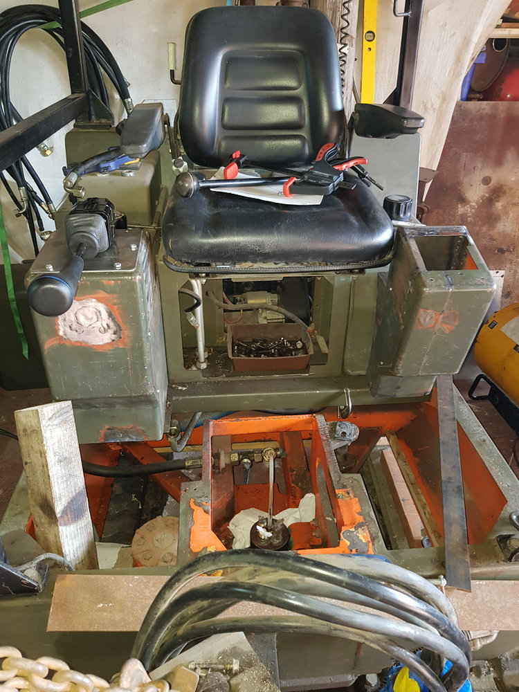 I didnt take a lot of fabbing photos but this is it in the process of being converted to joysticks either side , I basically split the old control box down the middle and used it either side, the left hand one moves and has a switch to divert hydraulic fluid back to tank when you pull a lever to get out