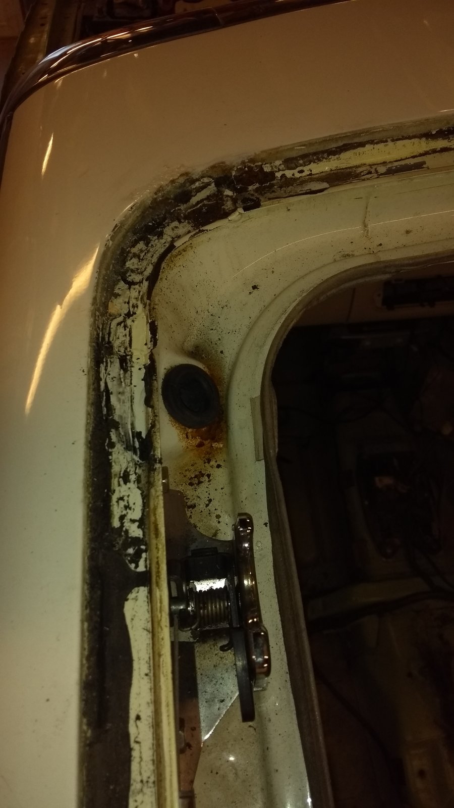 Next up was removing the plastics....I've managed to remove most of the plastics from inside the car except the dash. I also very carefully removed the roof seal...and I mean very carefully!! Easiest way to do it is with a small chisel and take your time. The roof seal wraps around the roof and the rear of the car....I can't imagine it's cheap if available at all!! Mine came off in one piece and is good condition. Figaros rust in the roof channels....this one isn't too bad but will need a little welding to sort. I imagine this would be difficult to fix without removing the interior plastics!
