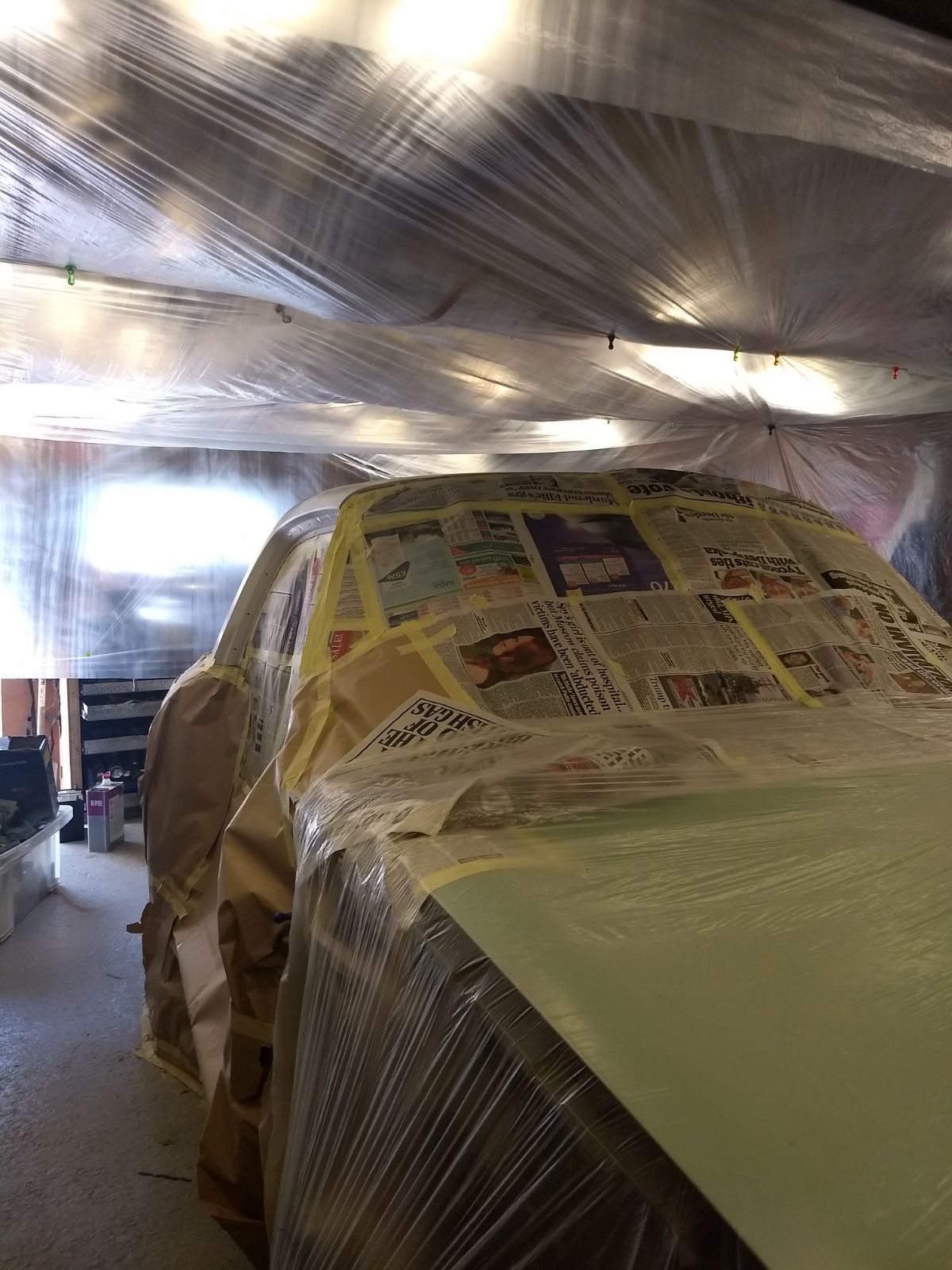 So MrC the painter couldn't make it today...I figured I'd help out by getting the masking done...then I got a little bored and figured the boot is an area that nobody sees anyway so why not give it a go